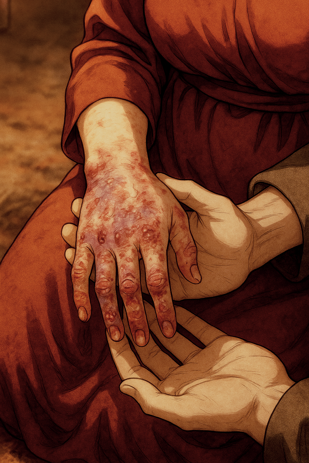 차가운 새벽에 생긴 상처 위에 노동의 굳은살이 다시 겹쳐지고, 그 자리에 서리 속 동상의 흔적까지 더해져 있었다. 발가락 사이에는 가시에 찍혀 나간 자국들이 살점을 앗아갔고, 깊게 파인 상처는 얼룩처럼 남아 있었다. 그 틈마다 차가운 공기가 스며드는 듯한 통증이 요셉의 감각에까지 번져 들었다.