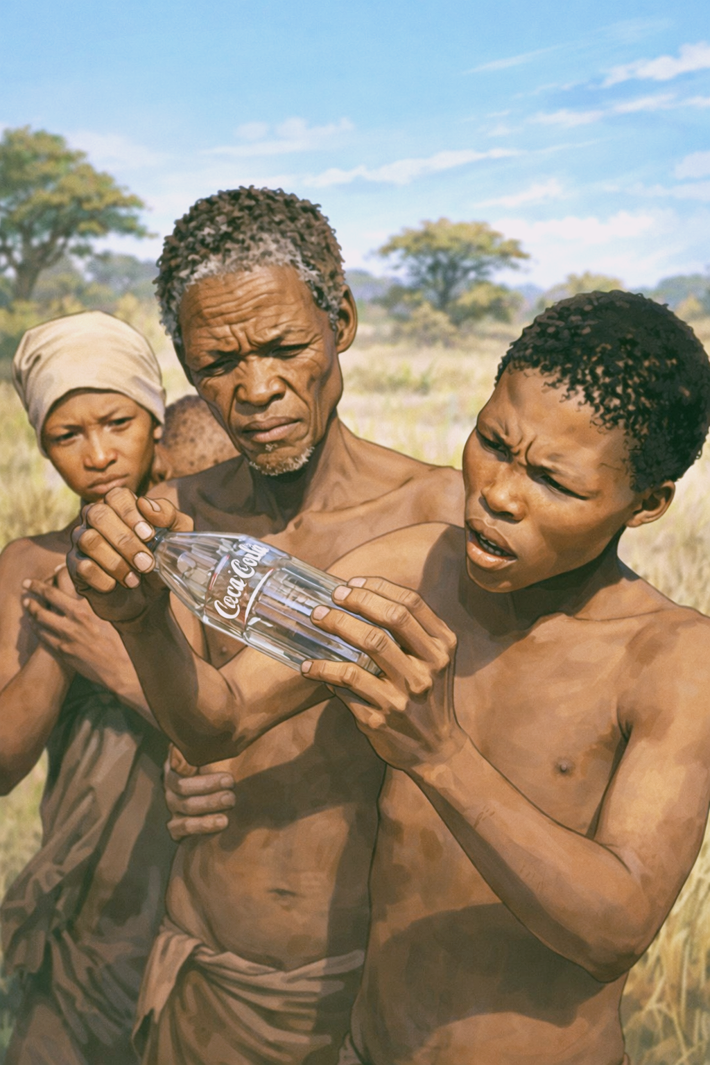 한 편의 TV 다큐멘터리를 본 기억이 아직도 또렷하게 남아 있습니다. 사막 한복판에 떨어진 투명한 빈 콜라병 하나를 부시맨이 주워 들고, 그것을 “신의 선물”이라 말하며 삶에 사용하는 장면이었습니다.