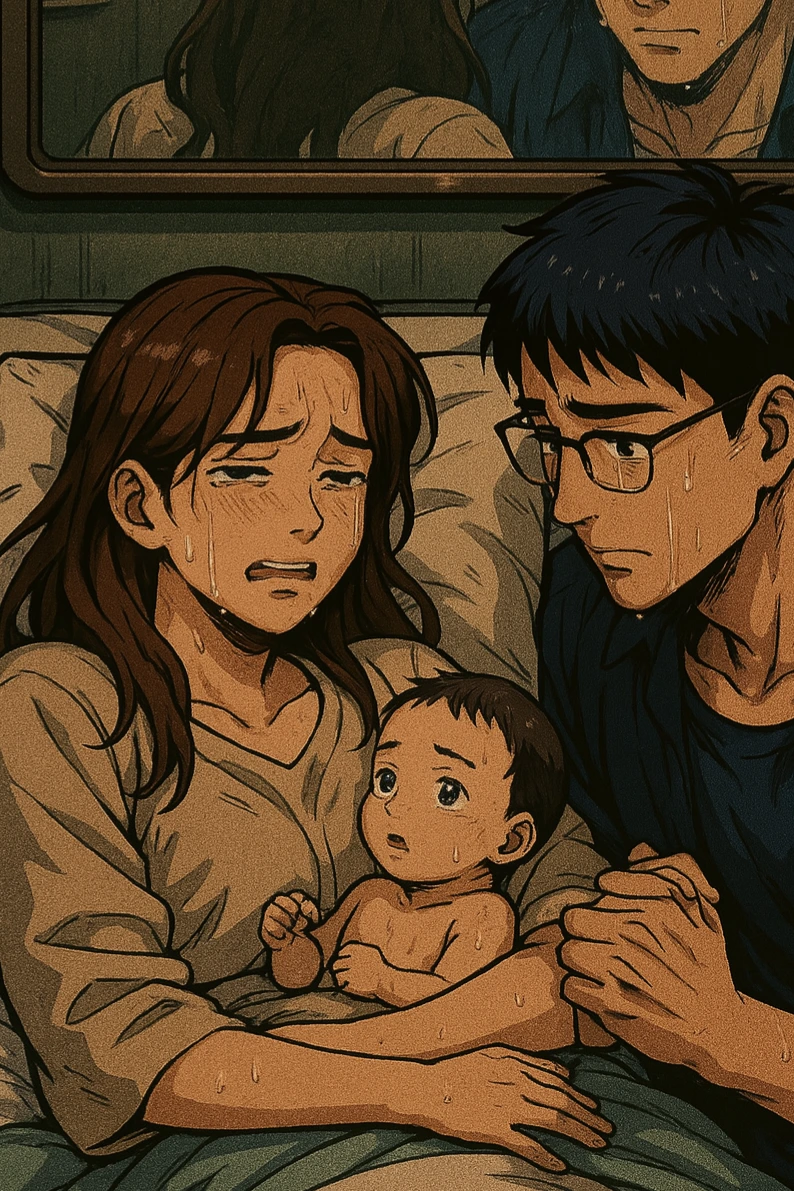 그녀는 두 손을 힘겹게 떨구었다. 손가락은 자연스럽게 침대 위에 놓였다. 조용한 분만실 안, 간호사의 손에 이끌려 닦인 아기는 조심스럽게 윤서의 가슴 위에 올려졌다. 아이는 눈을 천천히 떴다. 그 눈동자는 맑고 투명했고, 윤서와 지훈의 얼굴이 그 안에 그대로 비쳤다.