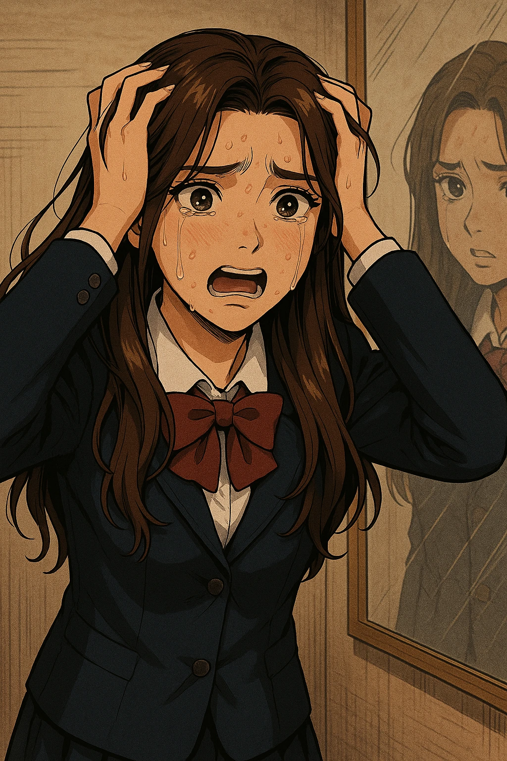 얼굴에는 몇 개의 여드름이 올라왔고, 눈동자는 여전히 깊었지만 어딘가 흐릿하게 피로해 보였다. 어깨는 움츠러들었고, 팔짱을 끼는 자세에는 방어적인 긴장이 서려 있었다. 거울 앞에 서면, 마리는 늘 고개를 돌렸다. 그곳에 비친 자신의 모습은 마음속 자기 본연의 이미지와 너무도 달랐기 때문이었다.