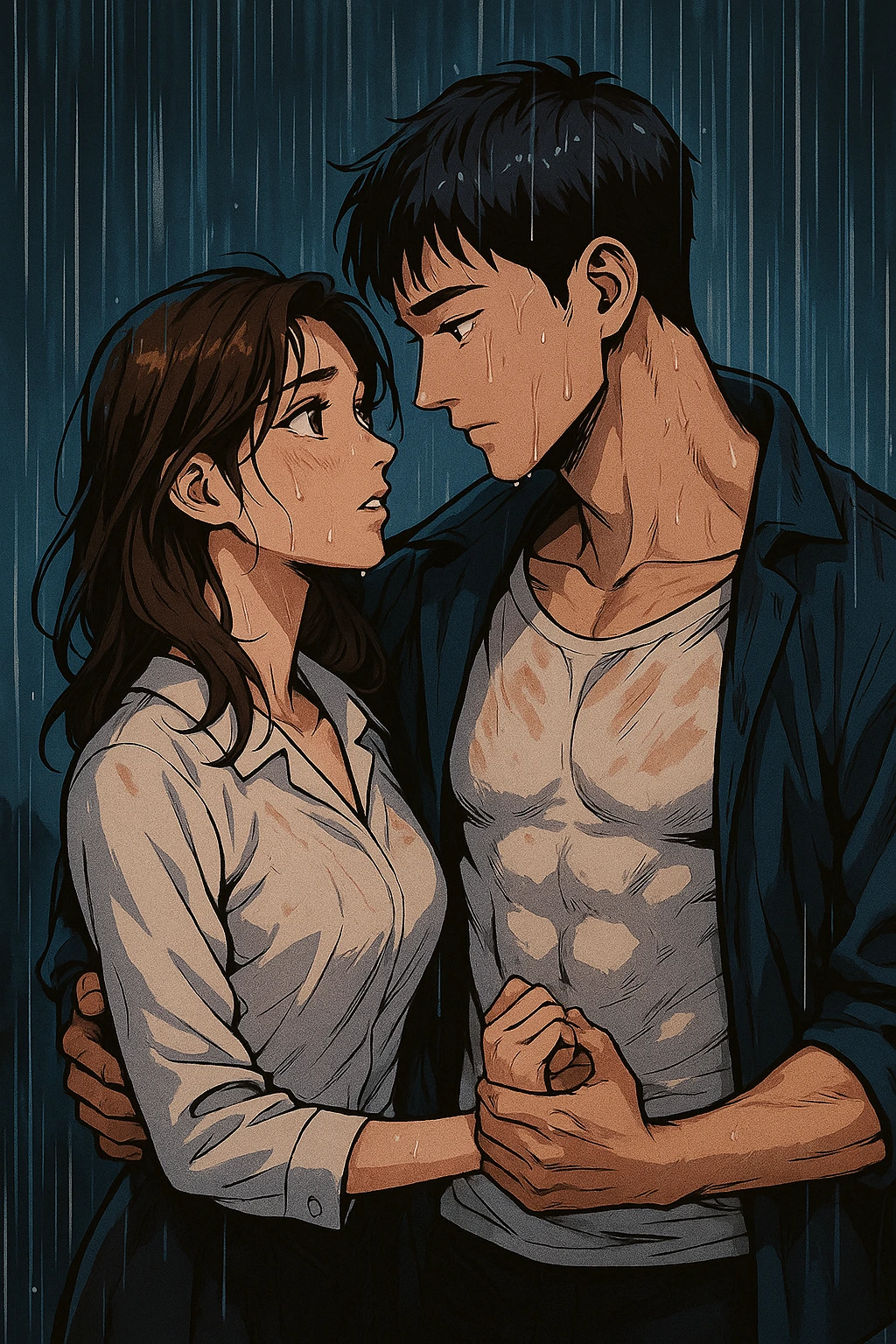 윤서는 지훈의 옷이 조용히 젖어 들어가는 모습을 거울처럼 보고 있었다. 셔츠가 점점 몸에 밀착되고,
