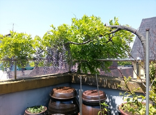 핑개거리가 생겨 긴 여행을 떠났다. 오랜만에 여행에서 돌아와 된장을 가지러 옥상에 들렀다가 그만 놀랄만한 일이 눈앞에서 펼쳐졌다. 지난해 포도나무를 베어낸 자리에 등나무를 심었지만 그 역시 올봄에는 잎을 피우지 않았다.