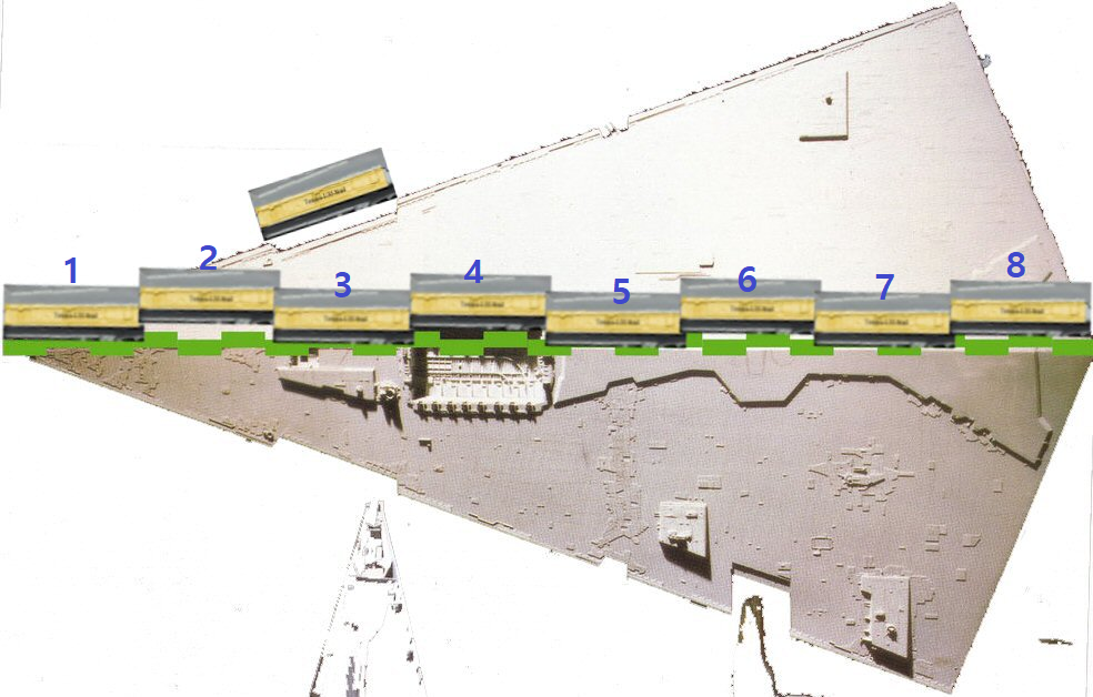 '152 x 8 = 1,216mm', 즉 'Star Destroyer'의 크기는 약 121.6cm로 기존에 '스타워즈 연대기'에서 알려졌던 91cm 보다 약 30cm가량이 큰 것이다.