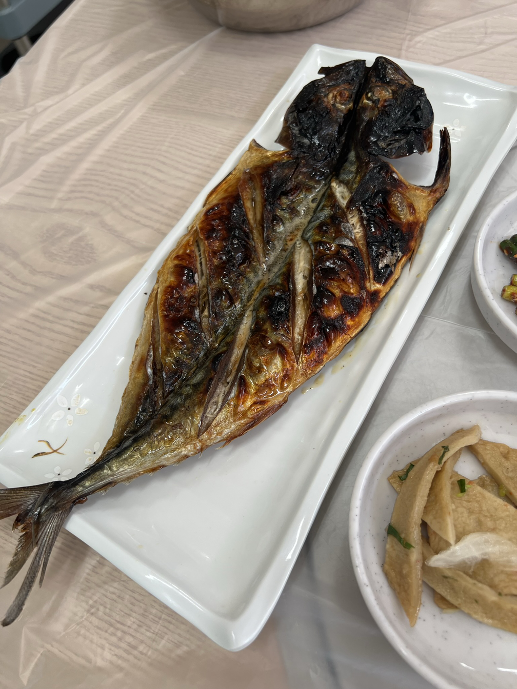그 옆엔 바삭하게 구워진 고등어가 놓였다.