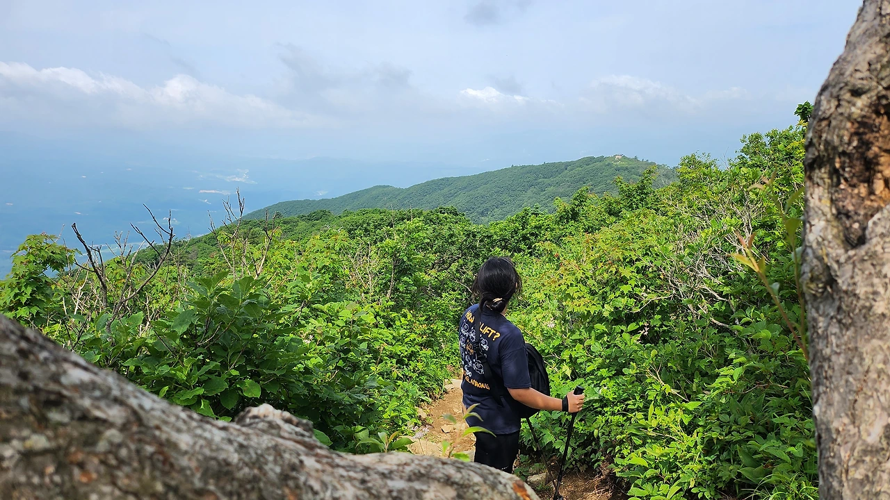 정상에 서자 바람이 시원하게 불어왔다. 땀을 씻어내는 바람과 탁 트인 풍경이 주는 청량감은 말로 다 표현하기 어려웠다. 잠시 자유를 만끽하며 사진도 찍고, 하늘 아래 서 있다는 사실만으로도 충분히 만족스러웠다.