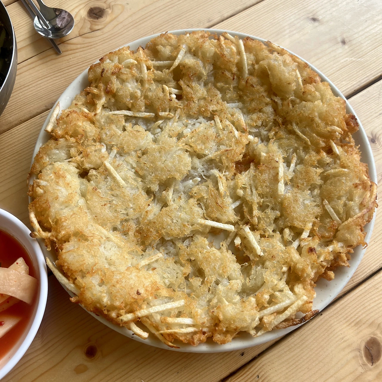 산을 내려와 허기를 달래러 들어간 식당에서는 감자전과 메밀막국수를 주문했다. 웨이팅이 길었지만 기다린 시간이 아깝지 않았다. 바삭한 감자전은 씹을수록 고소했고, 시원한 막국수는 땀에 젖은 몸을 단번에 풀어주었다.