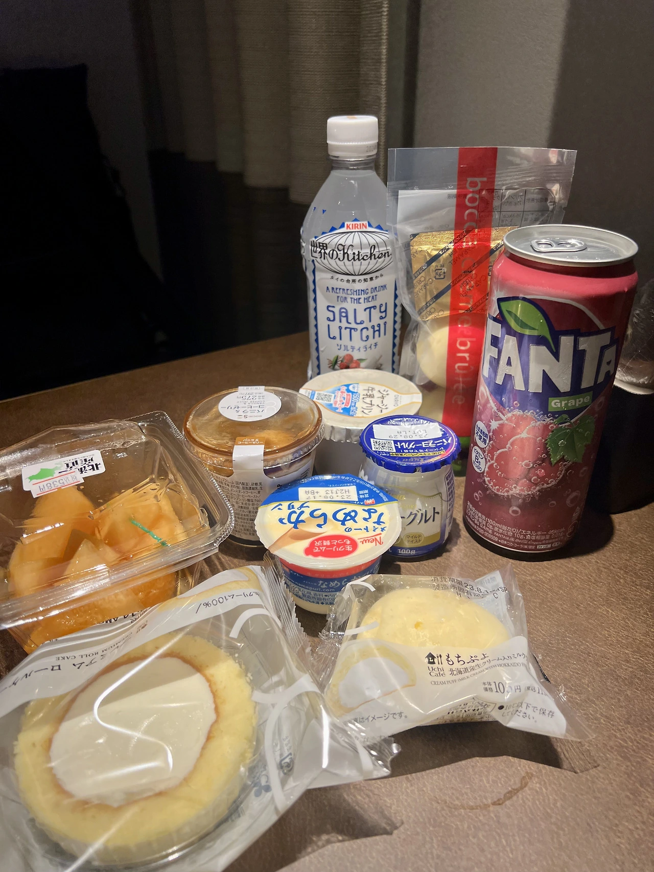 편의점에 들러 컵라면, 푸딩, 젤리, 음료수를 한가득 사서 숙소로 돌아와 ‘호텔 시식회’를 열었다.