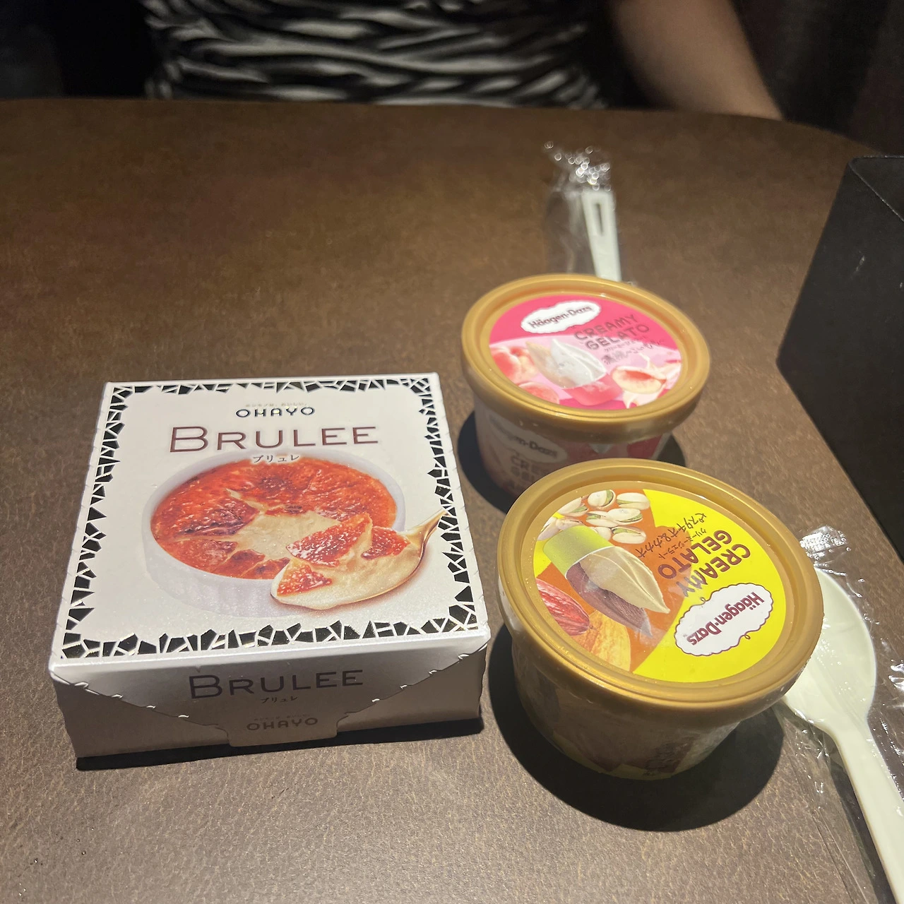 하겐다즈 젤라또, 브륄레, 소금리치 음료까지 테이블을 가득 채우고,
