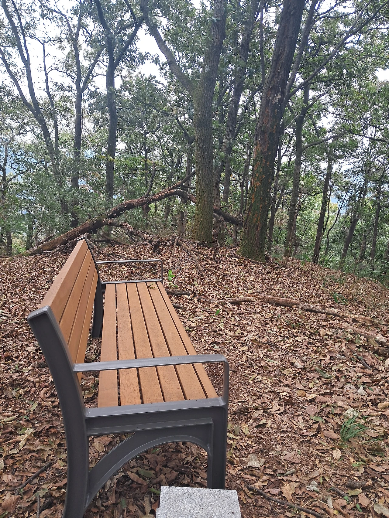 다행스럽게도 점심 식사 하던 곳까지 도착 한 다음부터는 낙엽과 도토리가 깔린 길을 미끄럼 타듯 내려왔다.