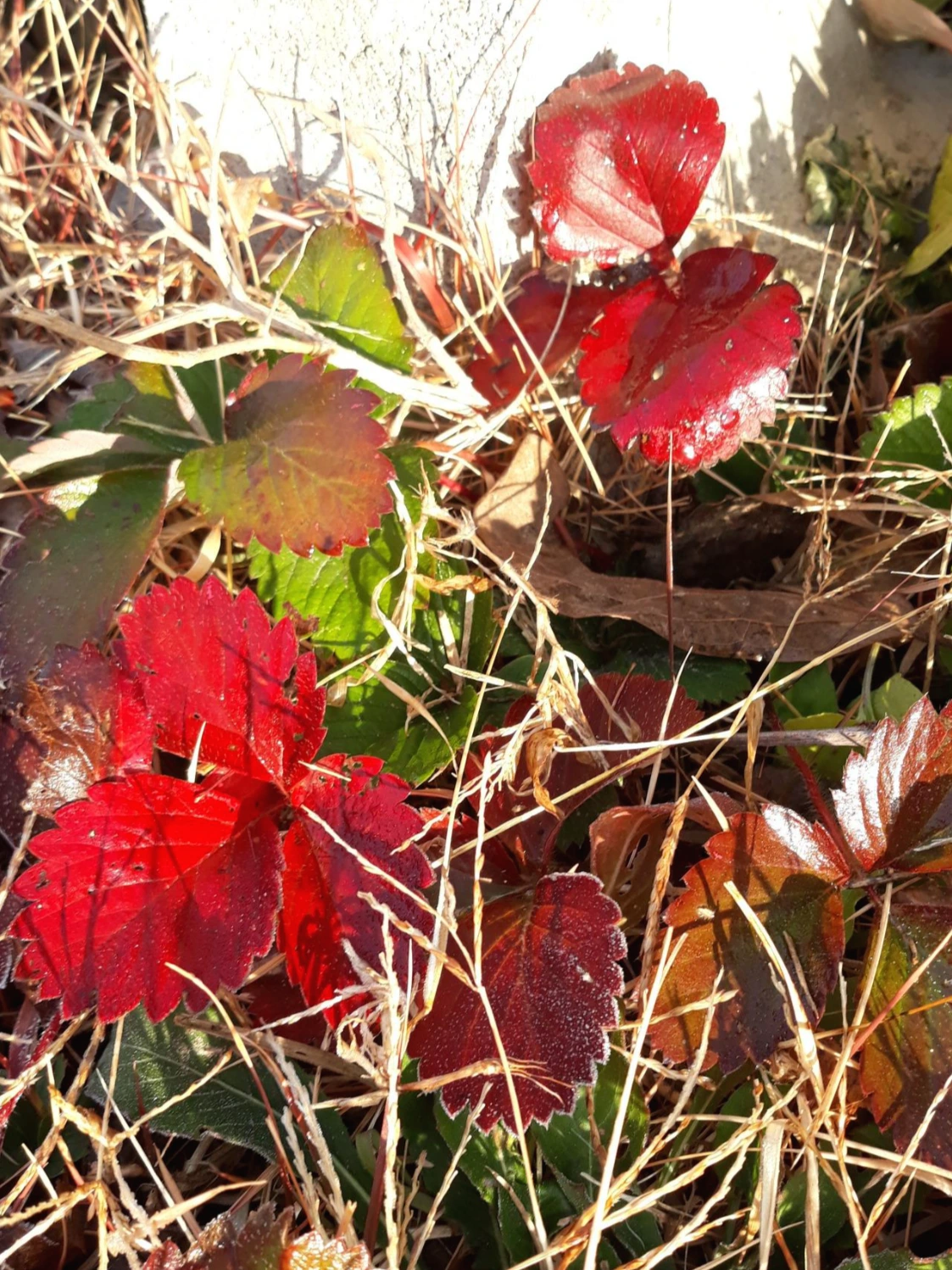 서리를 맞고도 고운 자태로 겨울을 버티는 딸기입니다.