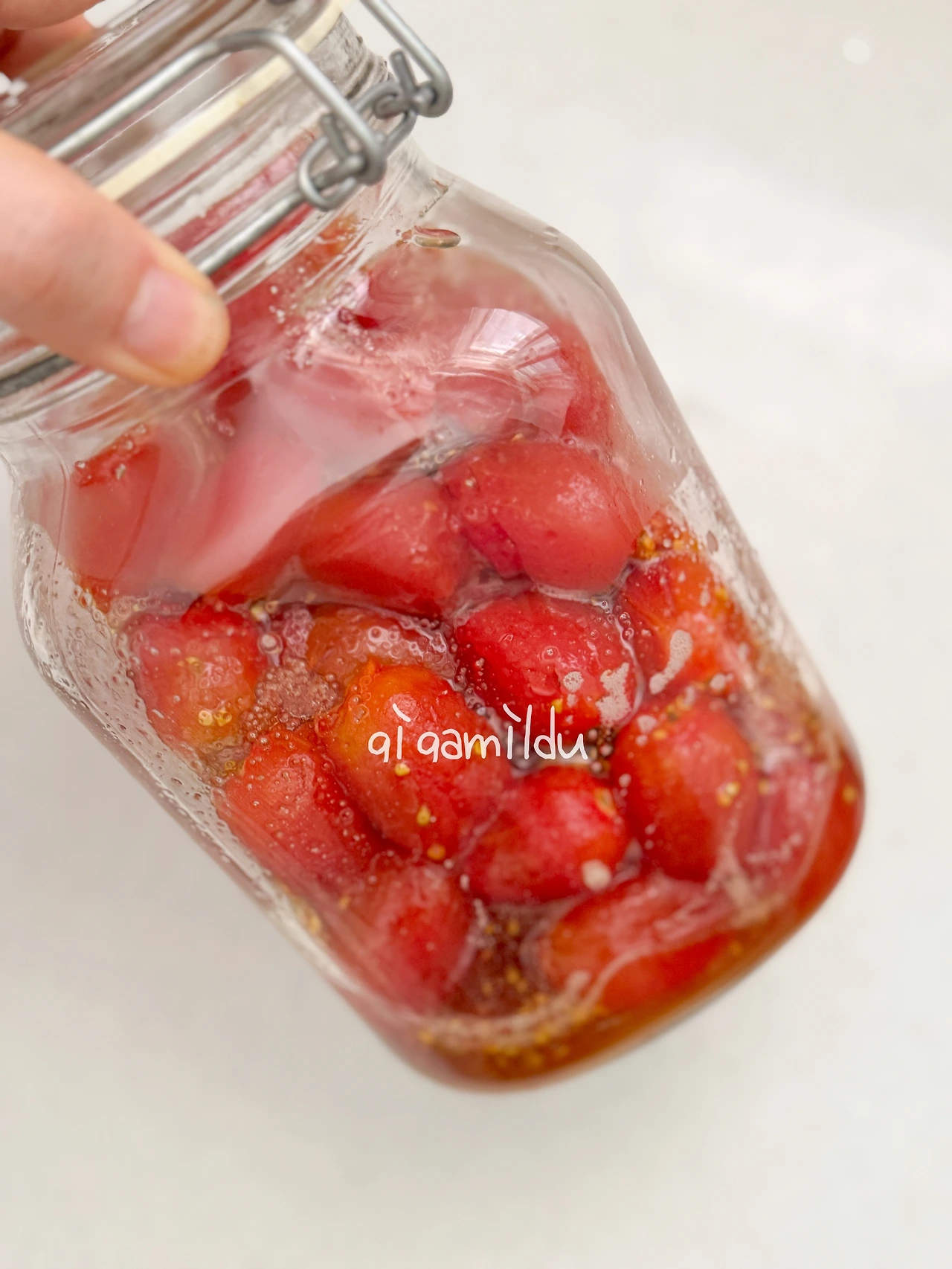 여름 느낌 가득한 모습의 토마토청이 완성이 되었다.