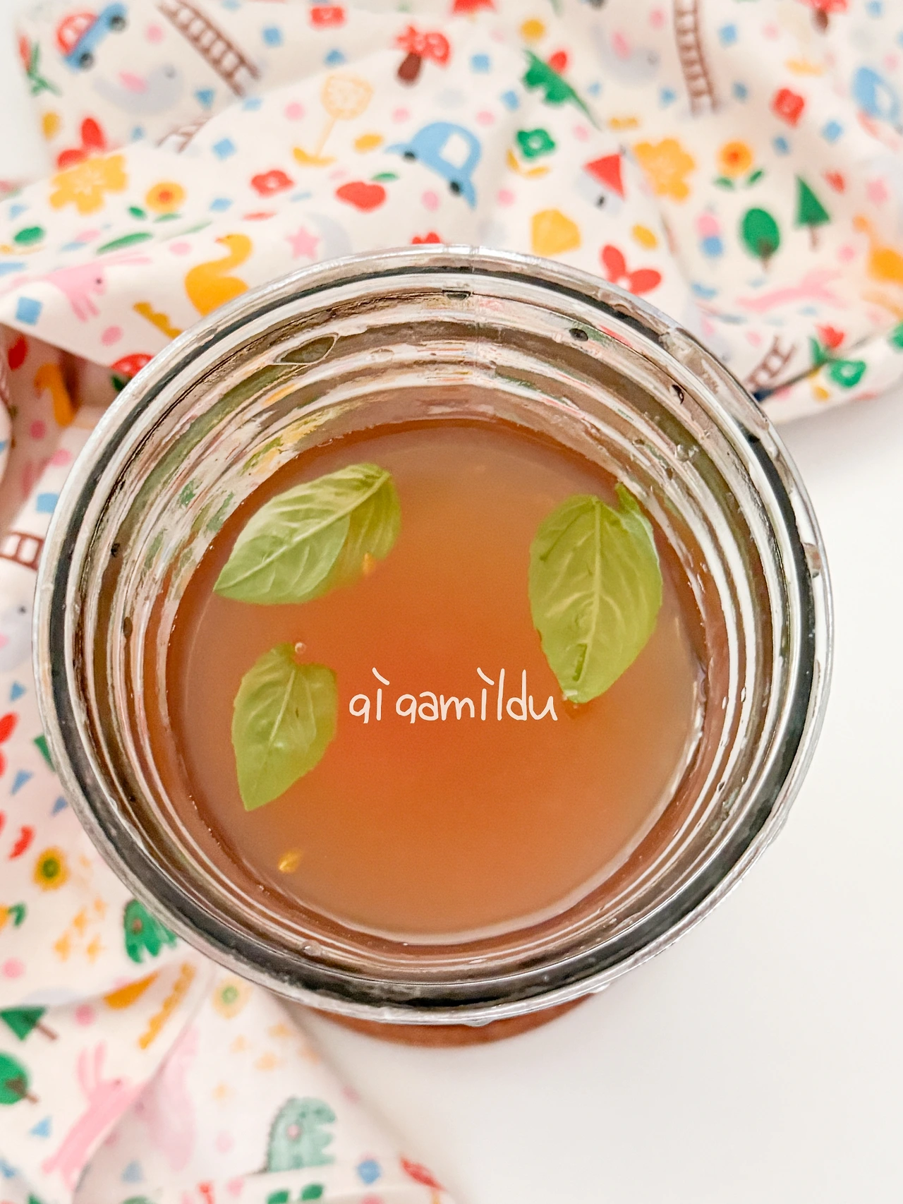 토마토청을 완성했다면 토마토바질에이드를 만드는 것은 일도 아니다. 토마토청, 생수나 탄산 그리고 바질만 있으면 토마토바질에이드는 완성이다. 토마토청과 생수 혹은 탄산의 비율을 1:1로 잡고 위에 바질 몇 잎 동동 띄워주면 완성이다.