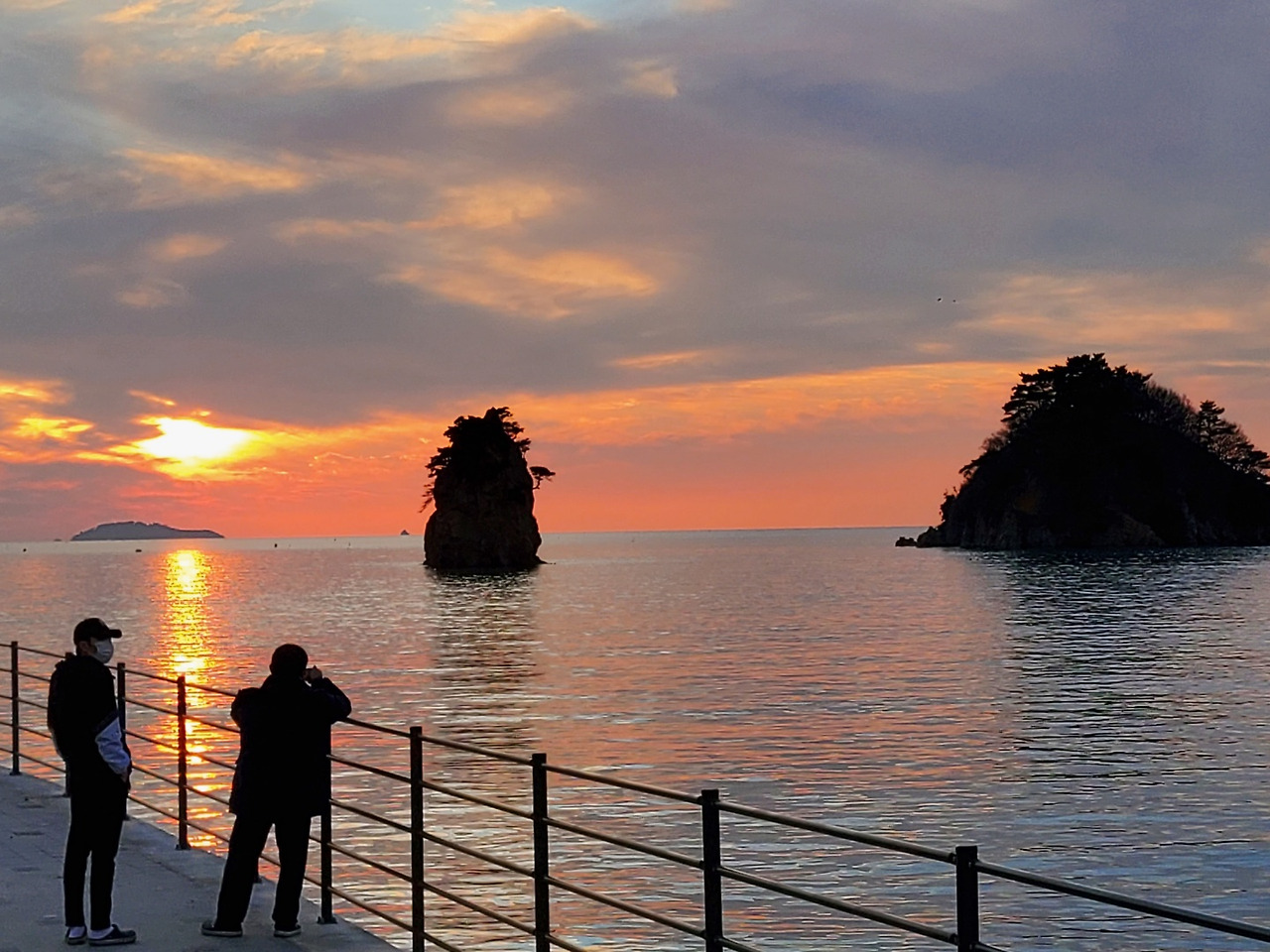 서해의 마지막 저녁노을 속에