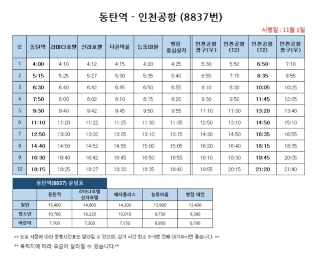 동탄역 ㅡ인전공항 버스 시간표나는 이런 불합리한 경우를 시정해야 한다고 제안사항을 경기도에 올렸다. 버스 배차 간격도 30분으로 줄이고 동탄역ㅡ라마다호텔ㅡ고속도로 인천공항 직통노선을 신설하는 제안을 올렸다. 부족한 예산은 경기도에서 지원하고 화성시에서도 시민들을 위한 대책을 적극 강구해야 할 것이다.