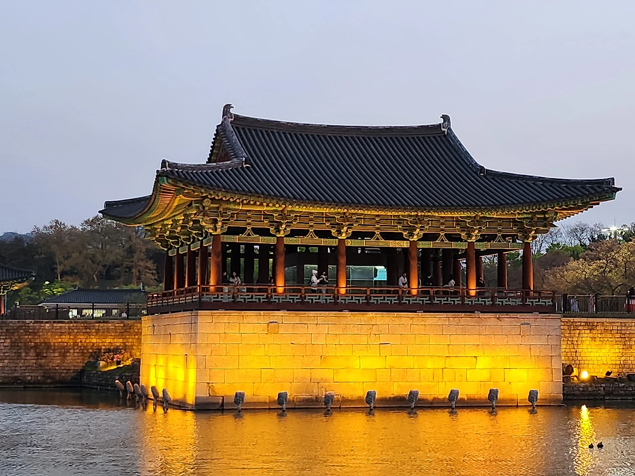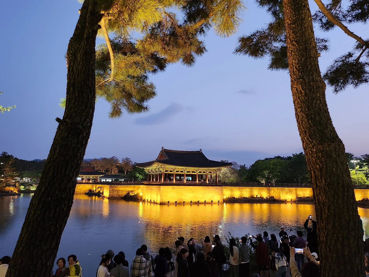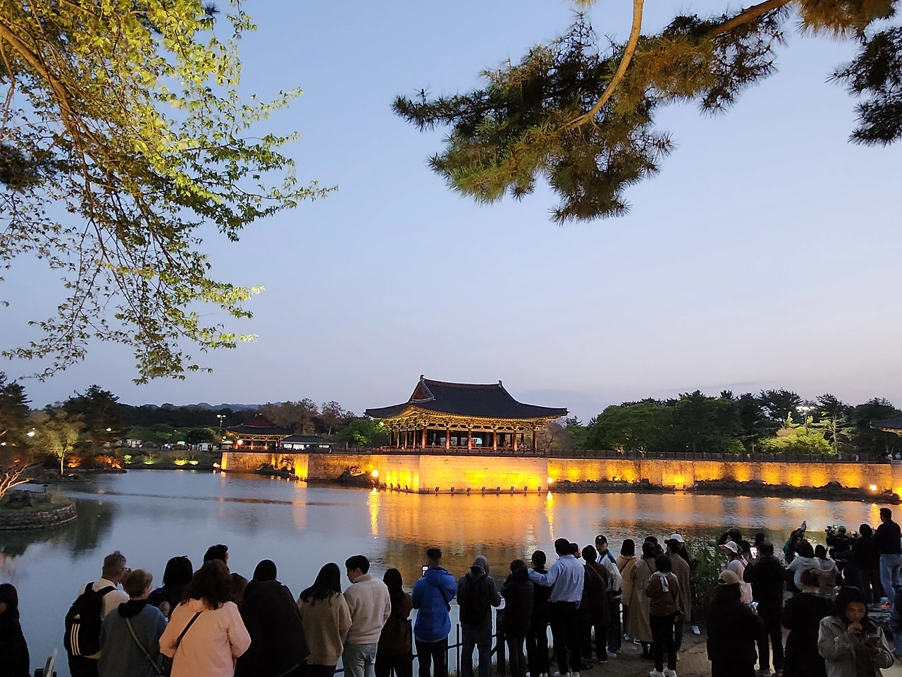 날이 어두워지기 시작했다. 왕궁 너머 해자를 지나 오늘의 최종 목적지인 동궁과 월지의 야경을 보기로 했다. 옛날 안압지에서 즐겼던 왕과 신하들의 야경을 보러 수많은 관광객들이 몰려들었다.