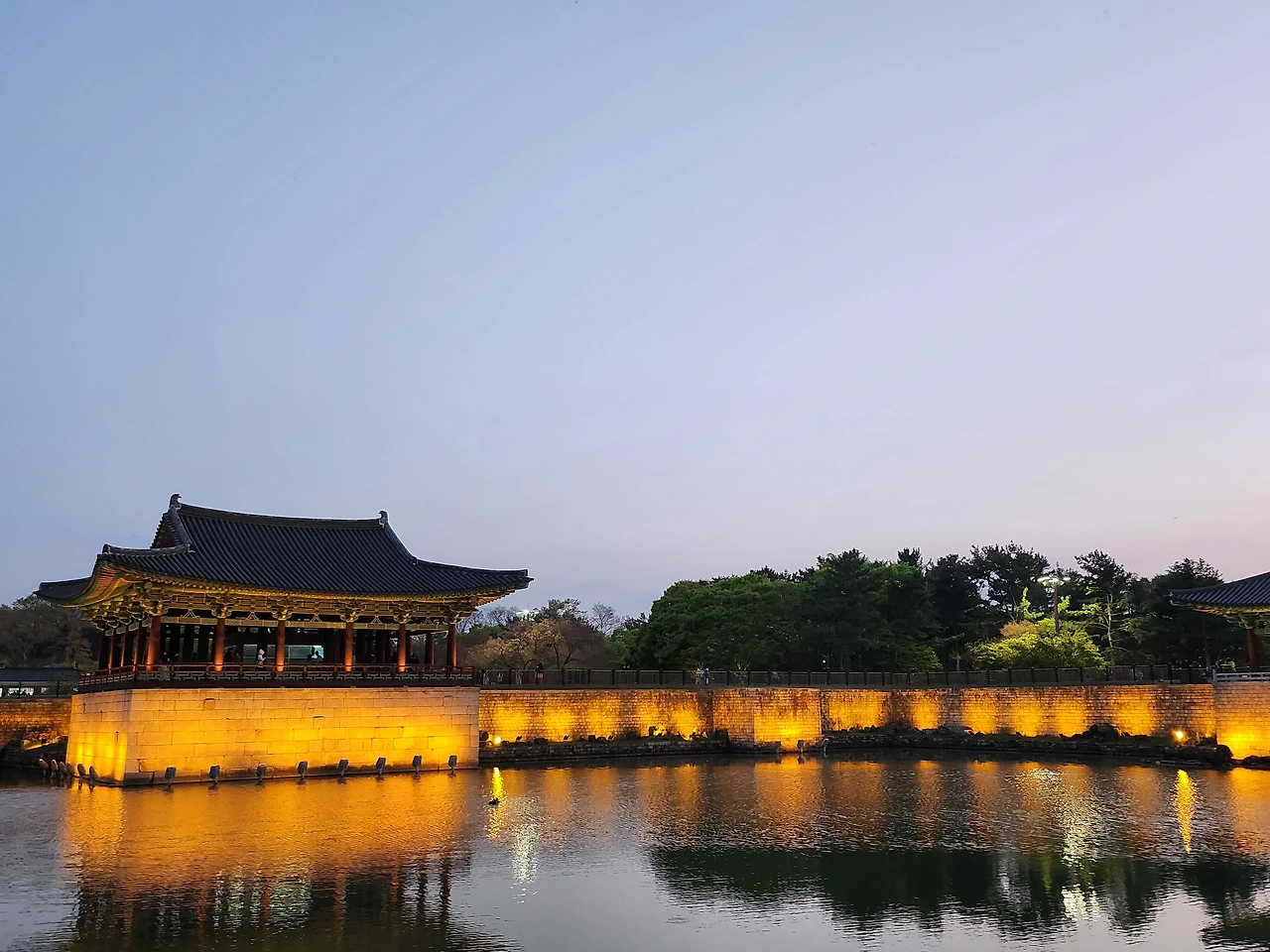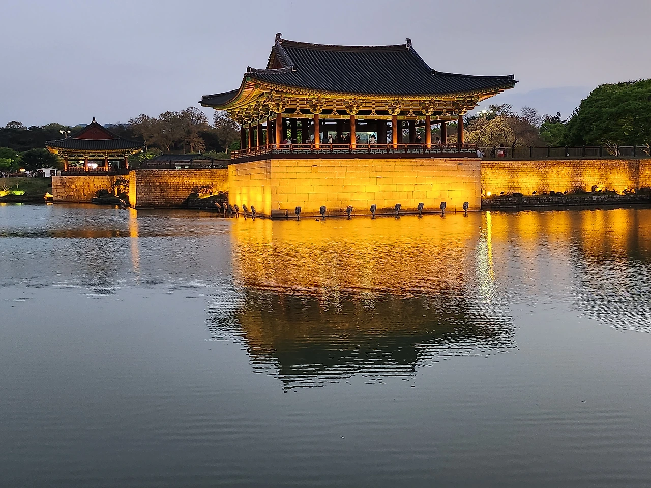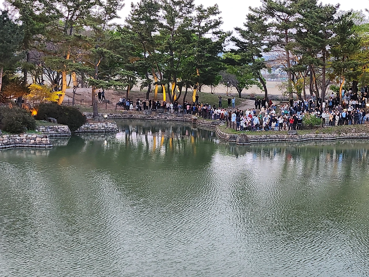 날이 어두워지기 시작했다. 왕궁 너머 해자를 지나 오늘의 최종 목적지인 동궁과 월지의 야경을 보기로 했다. 옛날 안압지에서 즐겼던 왕과 신하들의 야경을 보러 수많은 관광객들이 몰려들었다.
