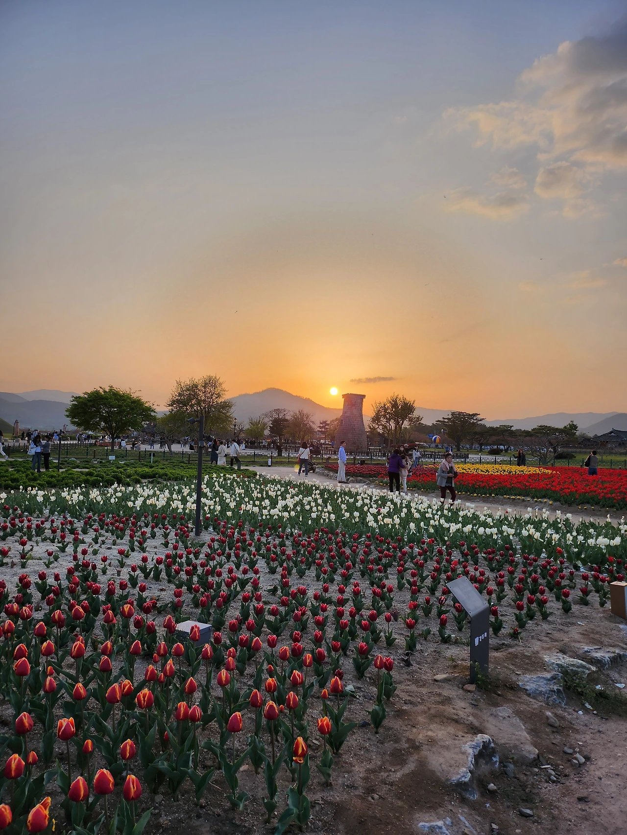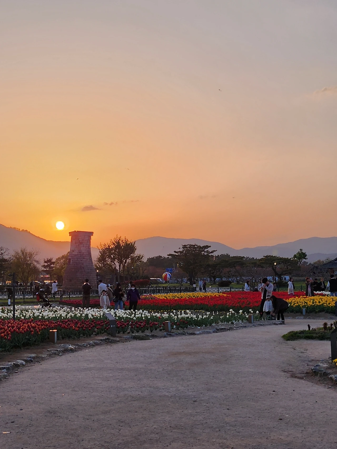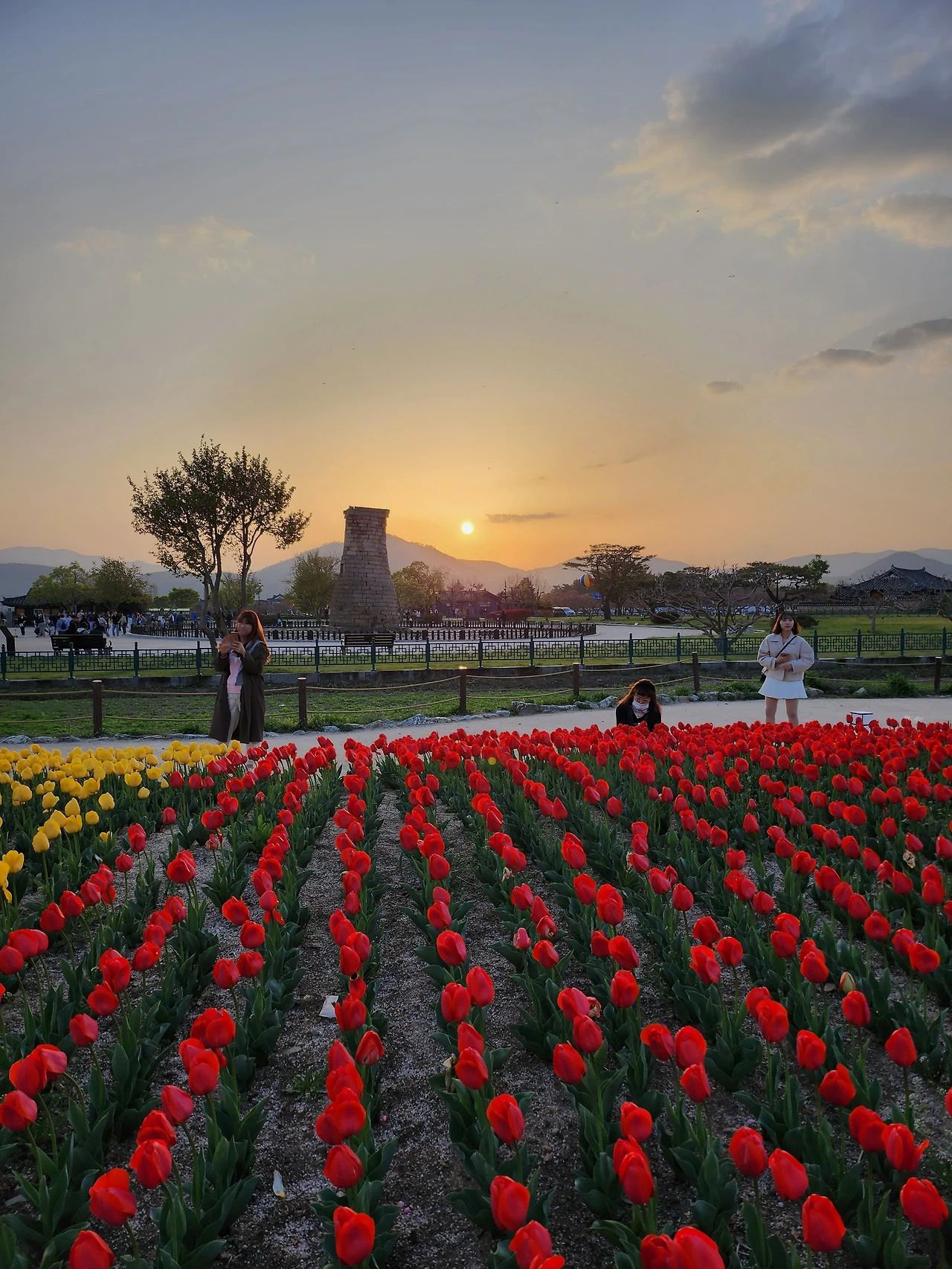천천히 걸어서 첨성대로 향했다. 옛날에는 작아 보였던 첨성대의 모습이 천년 이상을 서 있다는 것에 감탄과 경외감을 느끼게 하였다. 깊은 밤 첨성대 위에 누워 천문을 연구하던 학자들의 모습이 그려졌다. 주변에 심어놓은 튤립과 수선화들의 생생함에 다시 한번 감탄하며 사진에 담았다.