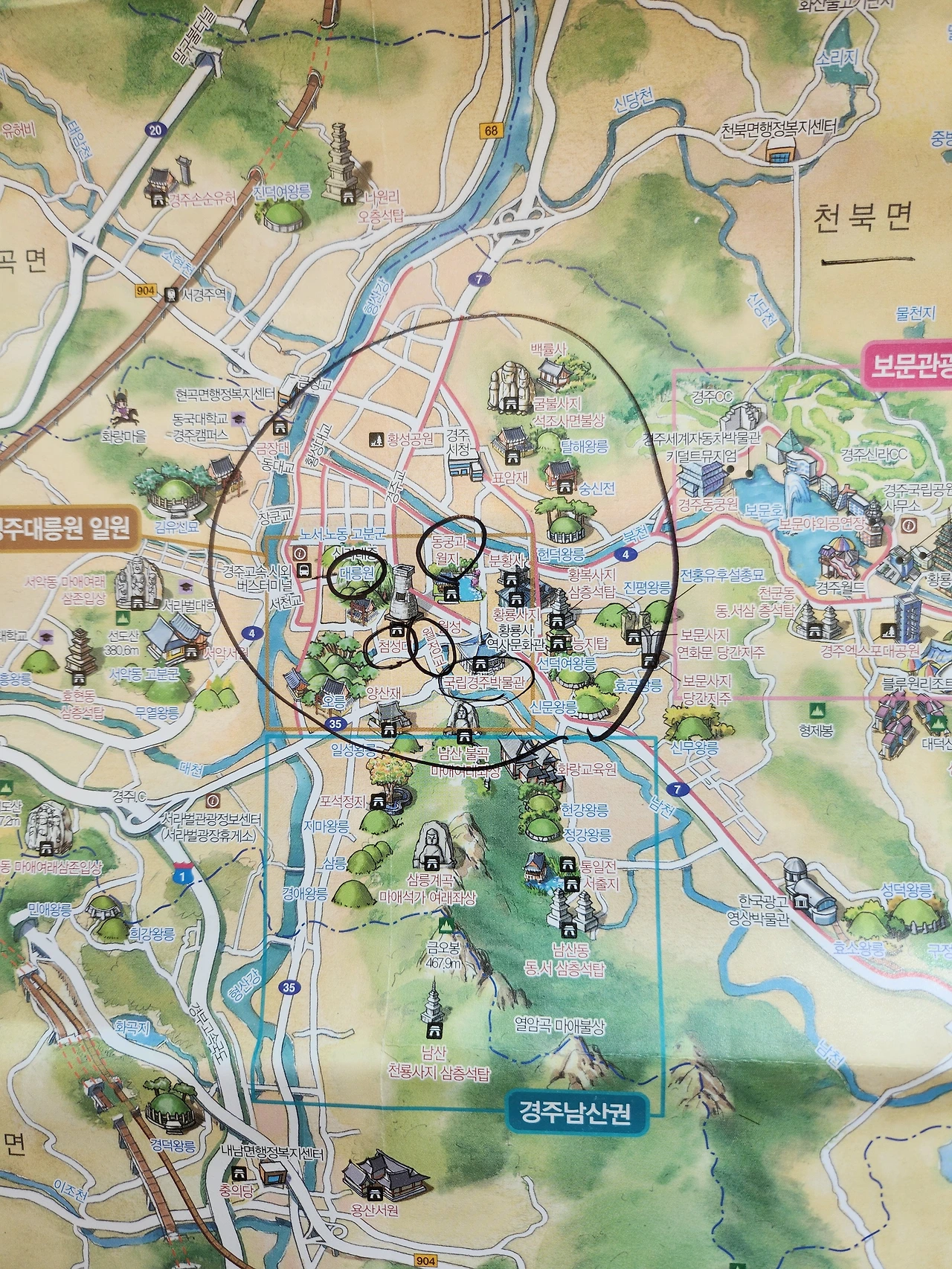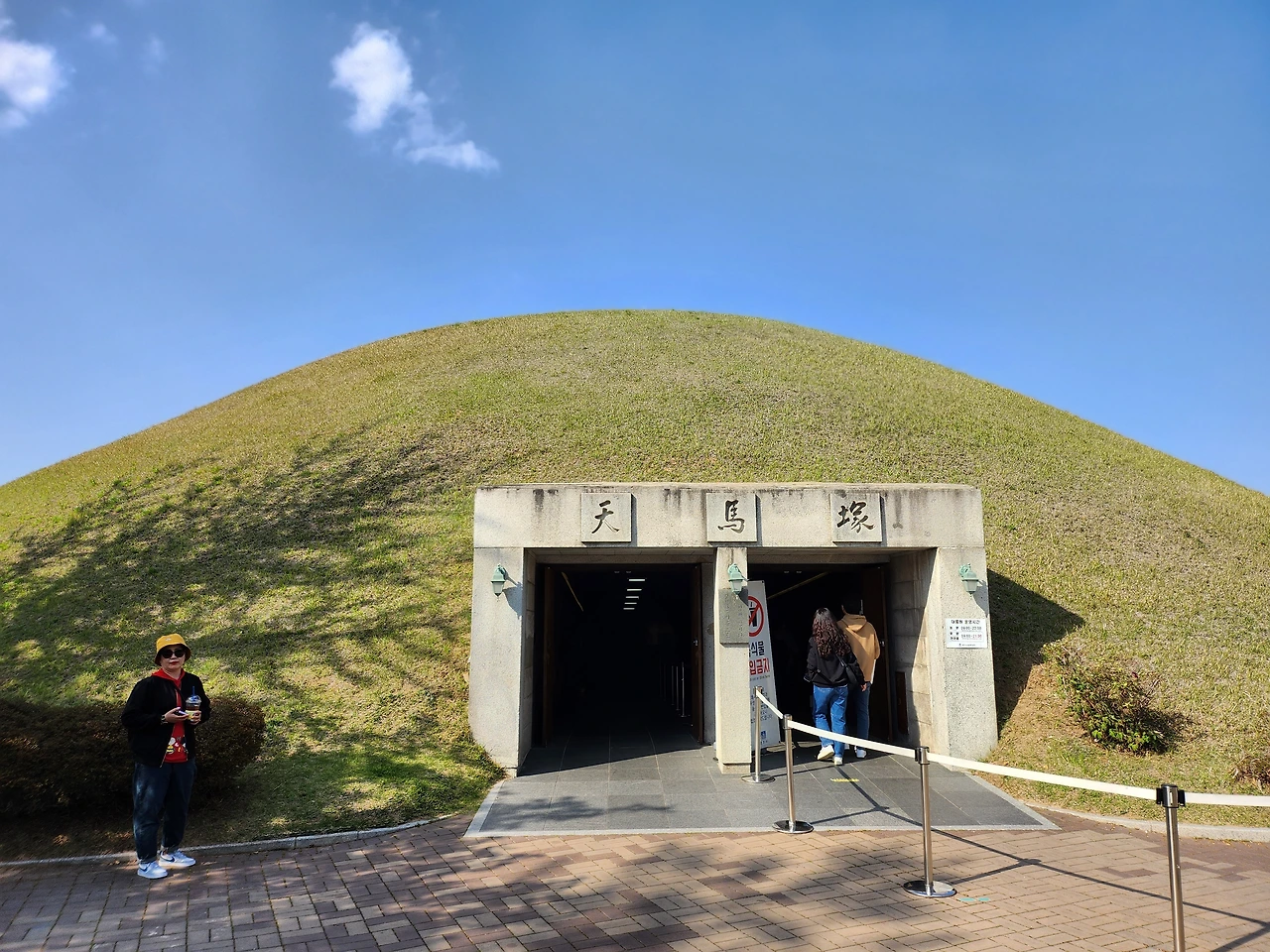 일단 대릉원의 천마총을 관람하기 위해 표를 끊었다. 수학여행 때 학생들을 인솔해 다녔었는데 지금은 학생들보다는 외국인관광객들과 일반인들이 가득했다. 십원빵이 유명하다고 해서 3천 원에 한 개를 사서 먹었다. 속에 치즈가 들어있어서 젊은이들에게 인기가 많다고 한다.