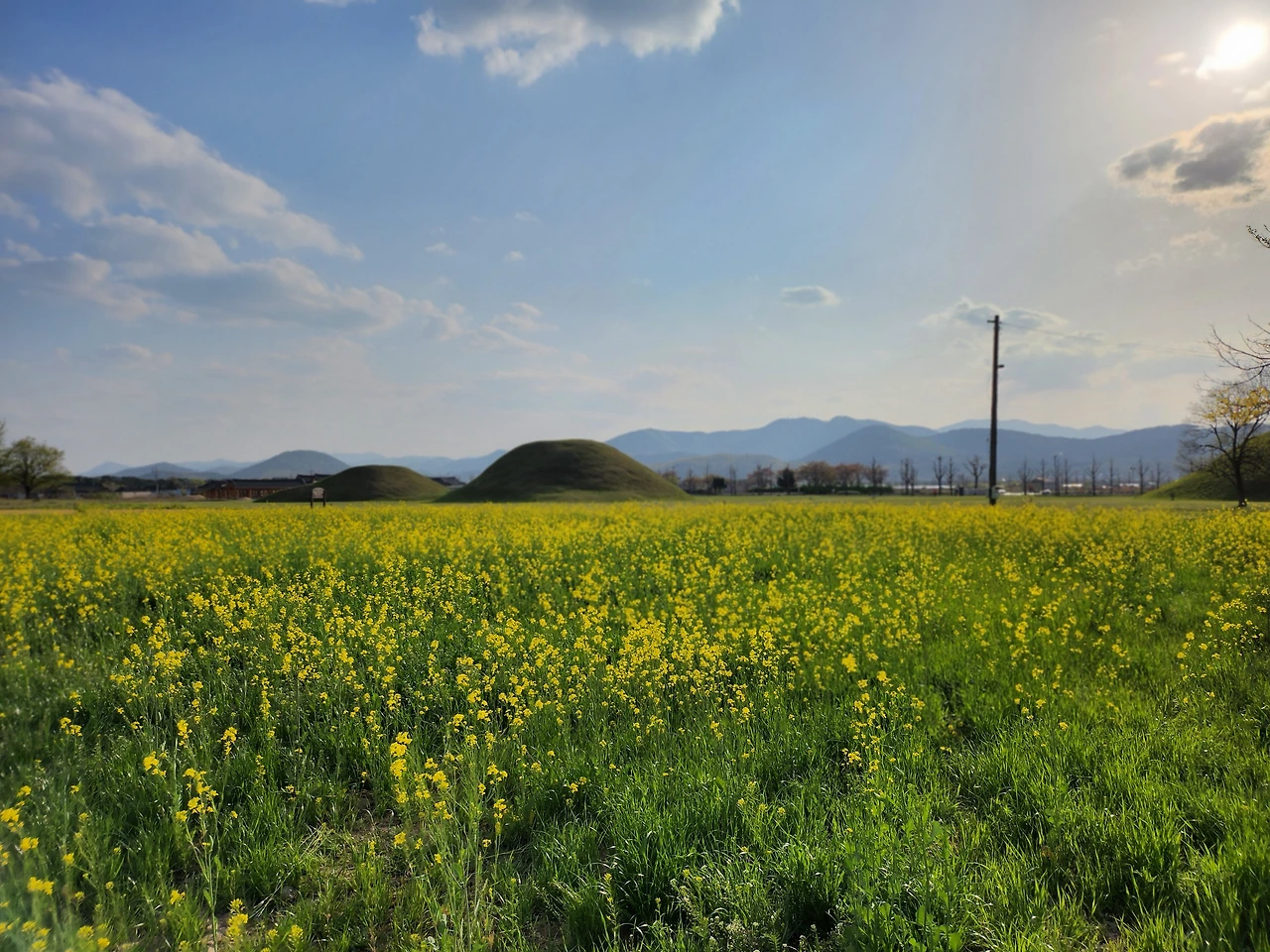 황리단길을 나와 내물왕릉 공터를 지나니 유채꽃밭이 펼쳐져 있었다. 유채향기를 맡으며 몇 장의 사진을 담았다. 그리고 교촌한옥마을을 다녔다. 경주 최부잣집도 보고 조용한 한옥에 들어가 쌍화차를 마셨다.