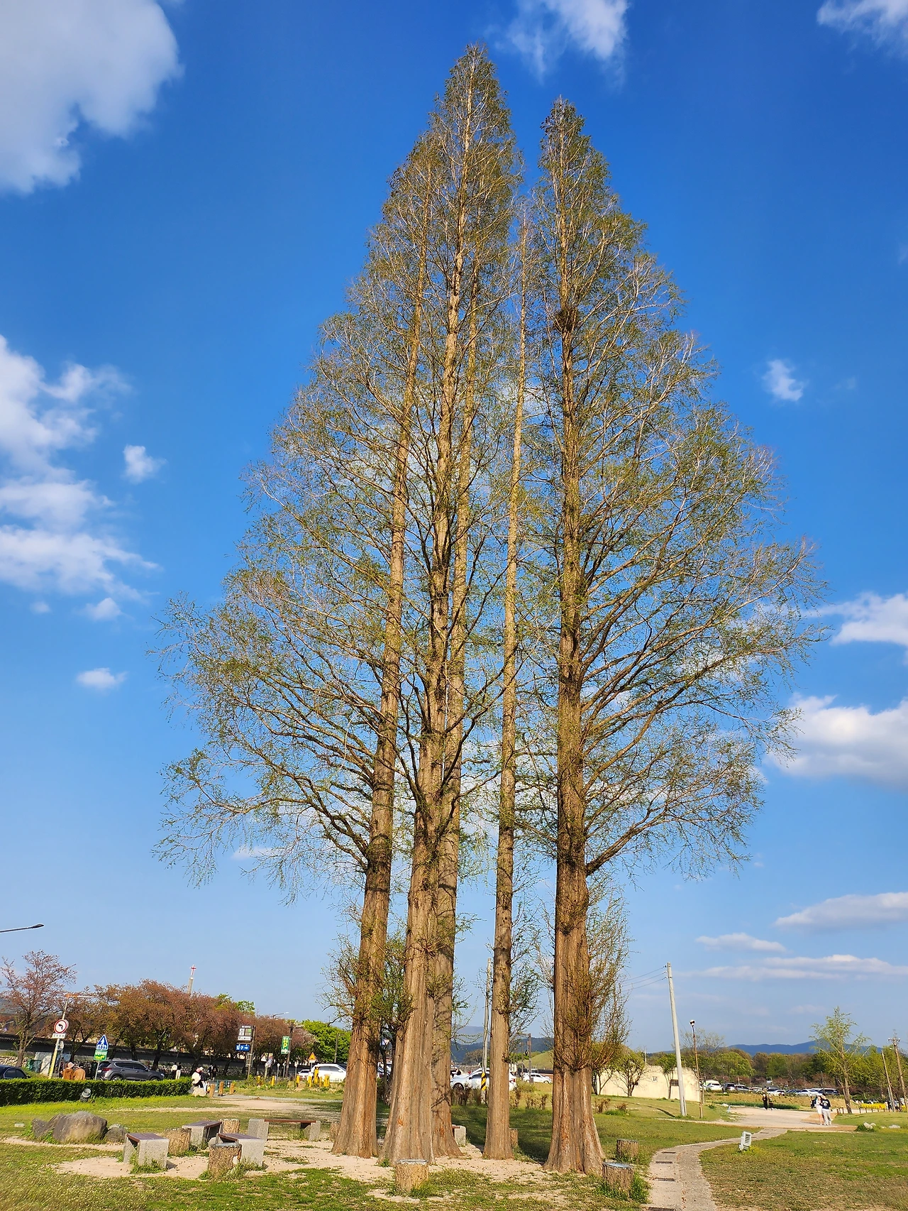 천마총 가는 숲길은 소나무들이 우거져있어서 운치가 있었다. 배롱나무들은 앙상하게 자리를 차지하고 있어서 특이한 자태이다. 경주 벚꽃은 지난주에 이미 다 져서 볼 수 없게 되었다. 바람도 적당히 불어 춥지 않고 햇빛도 따스했다.