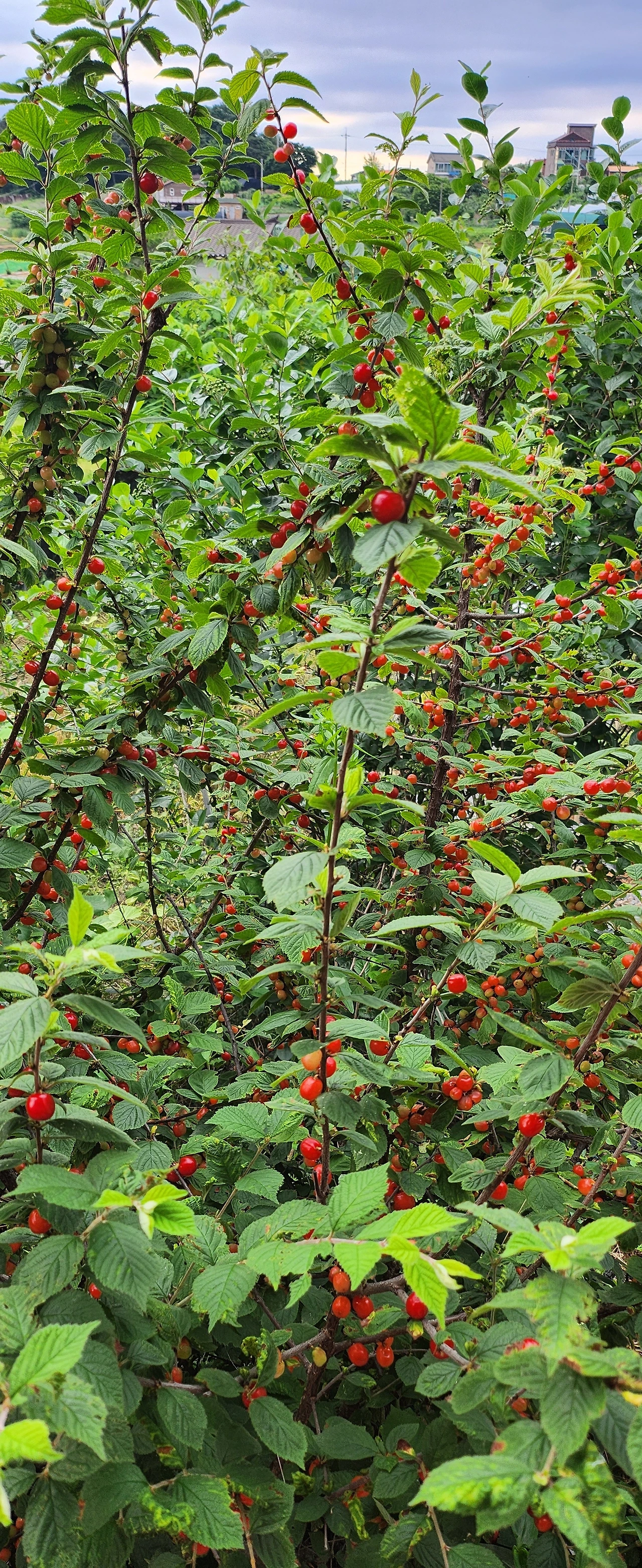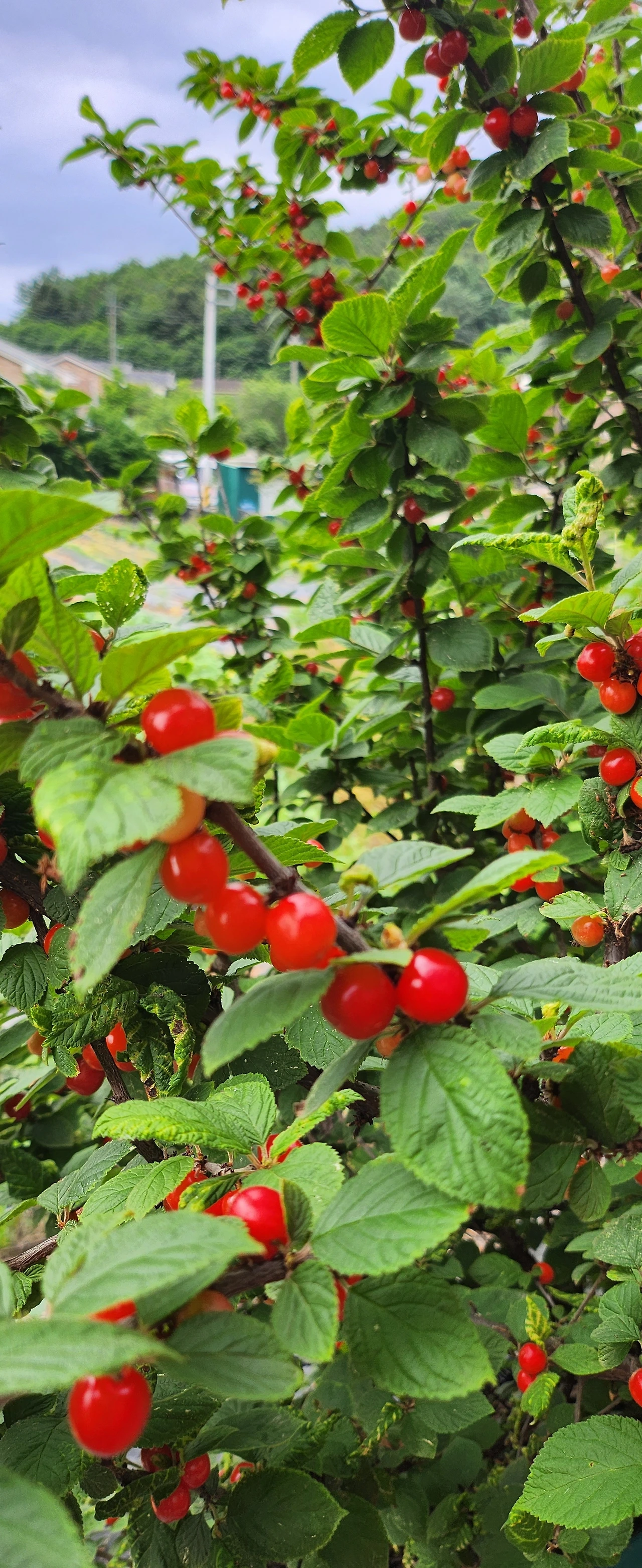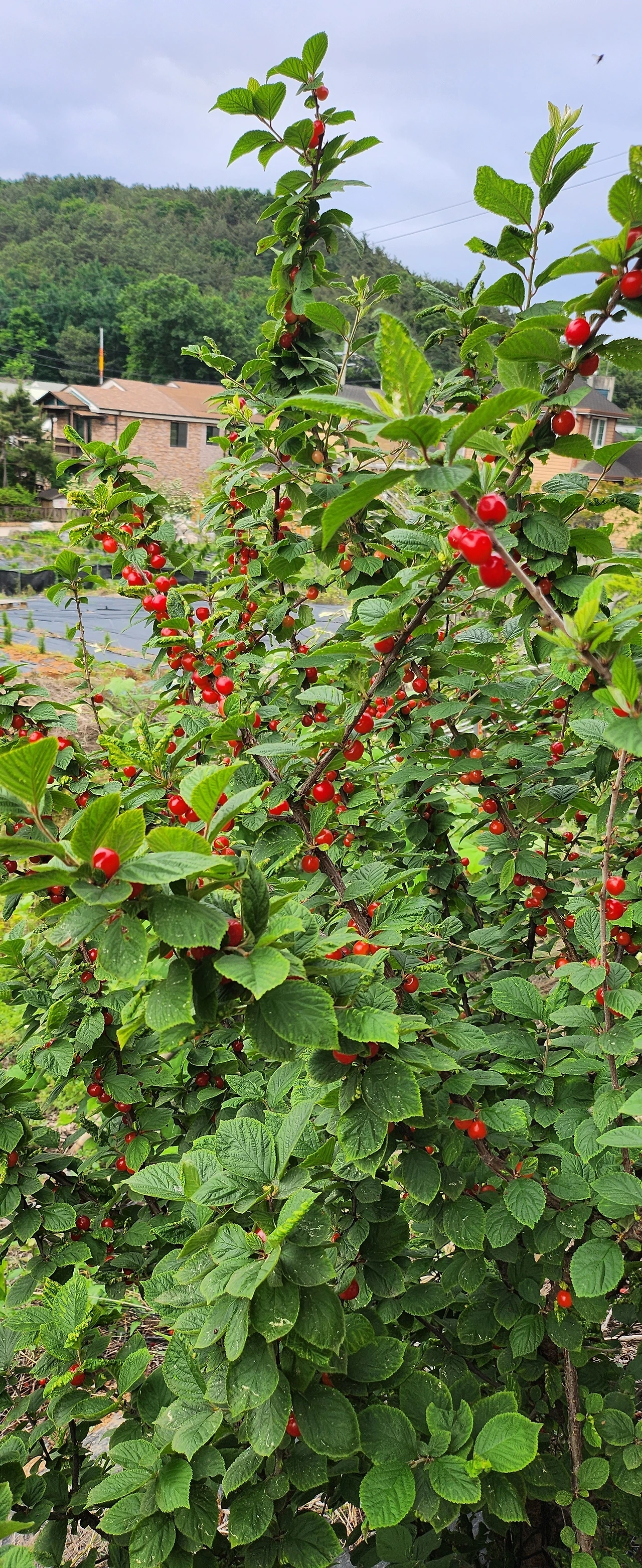 출근 전에 일을 마쳐야 하기에 부지런히 할 일을 해야 합니다. 앵두나무에 앵두들이 주렁주렁 달려있어 먼저 앵두부터 땁니다.