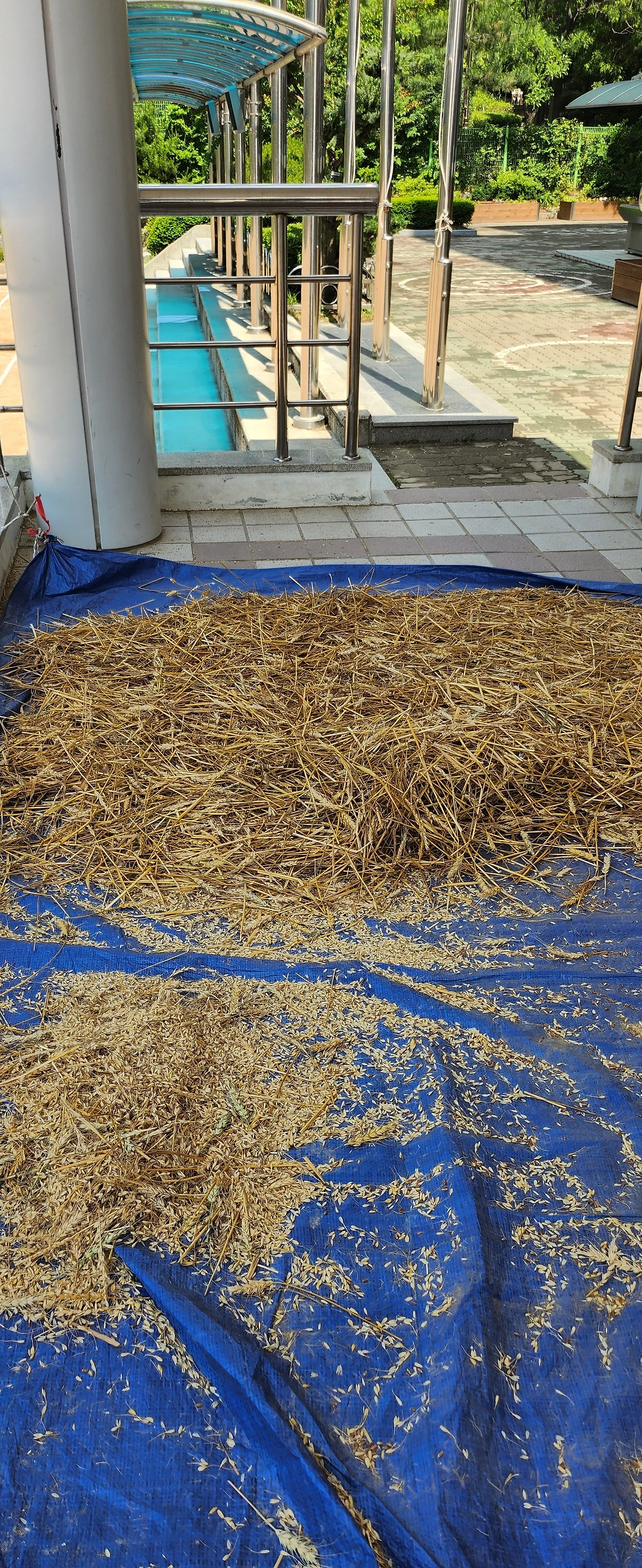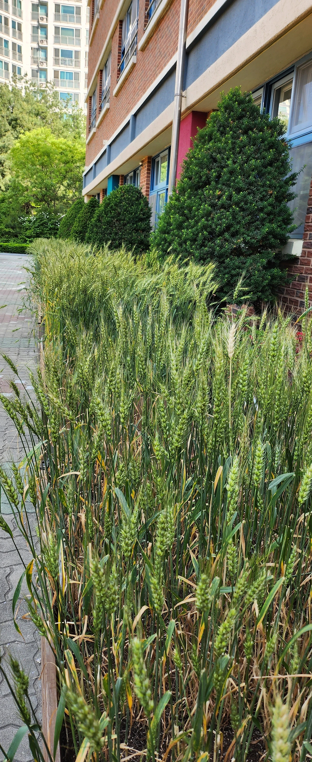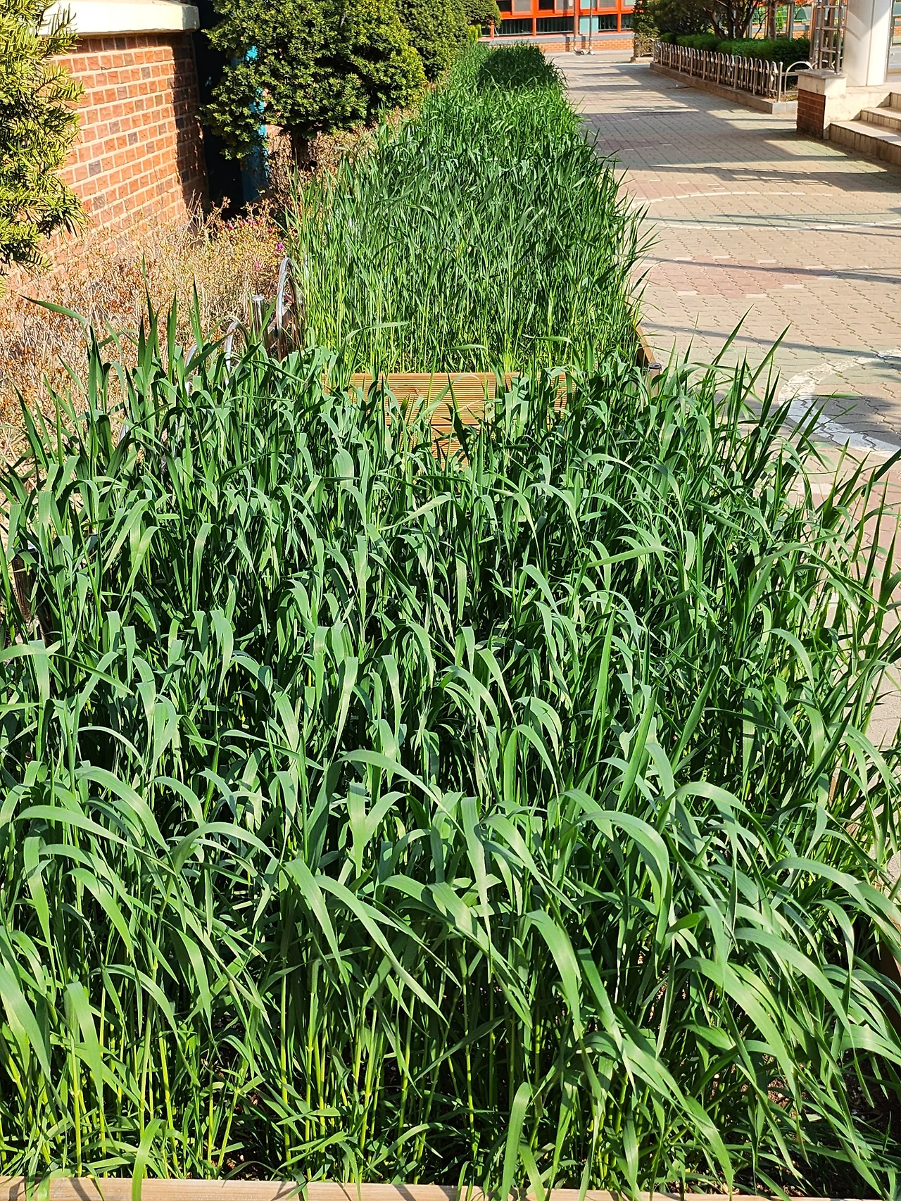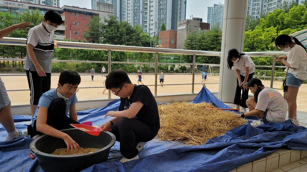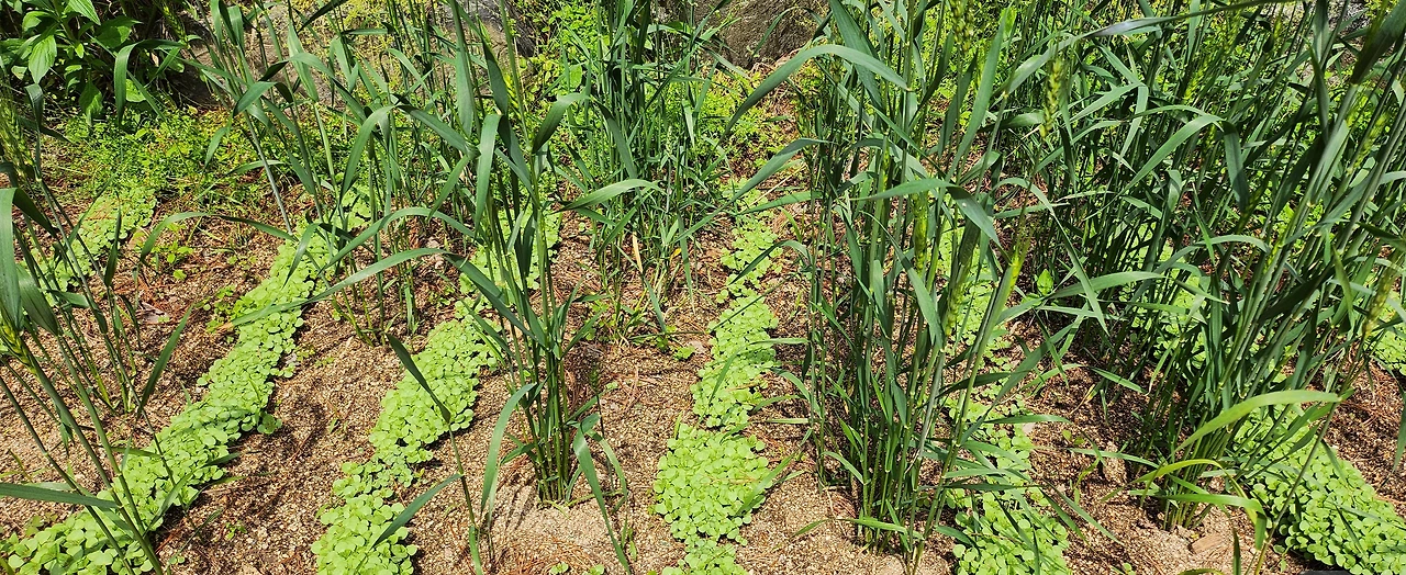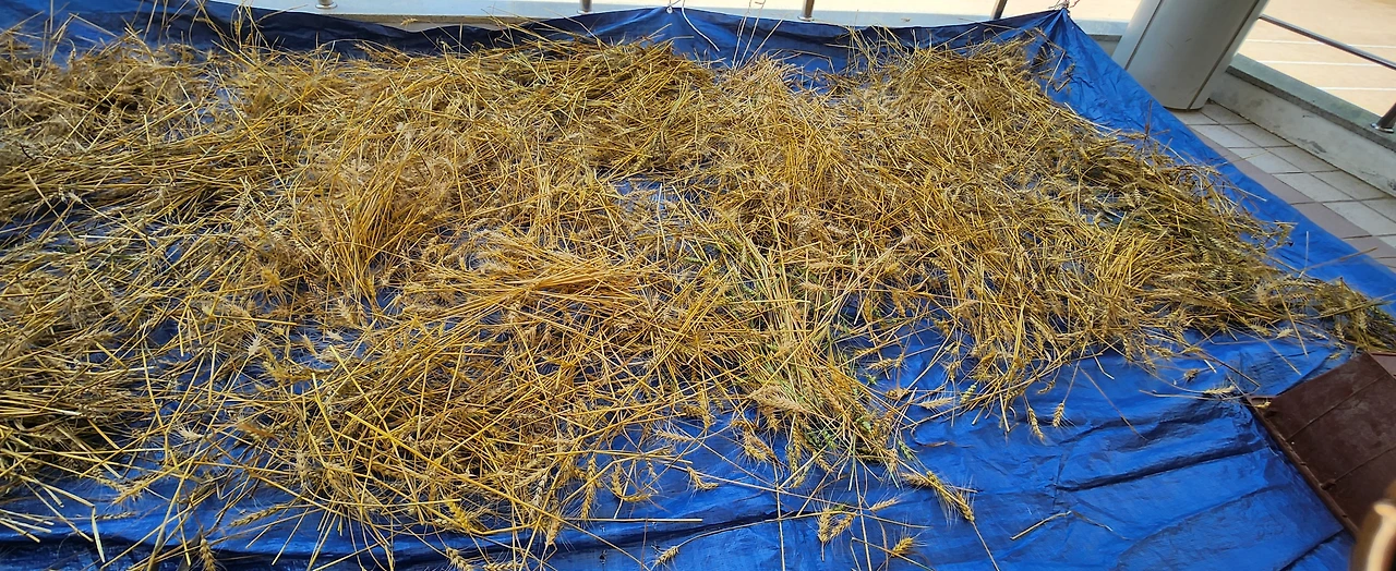 작년 11월에 우리밀 씨앗을 무 수확을 마친 학교 식물 체험장에 뿌렸다. 싹이 트고 추운 겨울을 이겨내더니 마침내 봄을 맞이했고 쑥쑥 자라 밀밭을 만들었다.