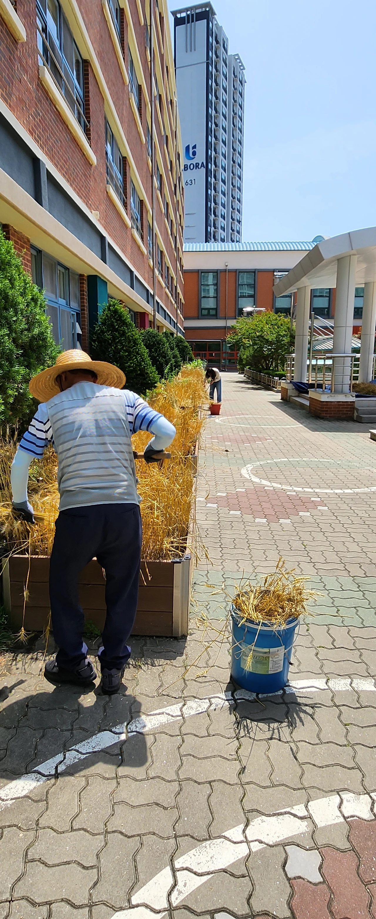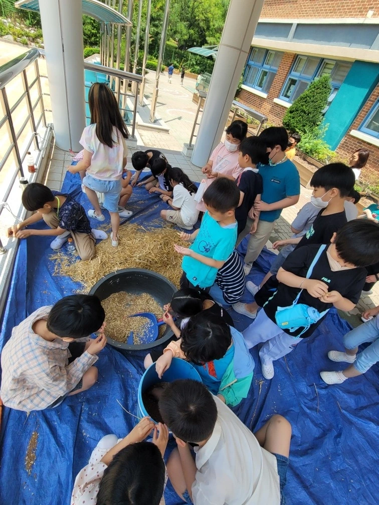 점심식사 후에 병설치원 아이들부터 6학년 학생들이 늘 관찰하였고 누렇게 물든 밀밭에 참새와 비둘기들이 몰려들었다. 아이들의 웃음소리와 새들의 지저귀는 소리가 한가득이었다.