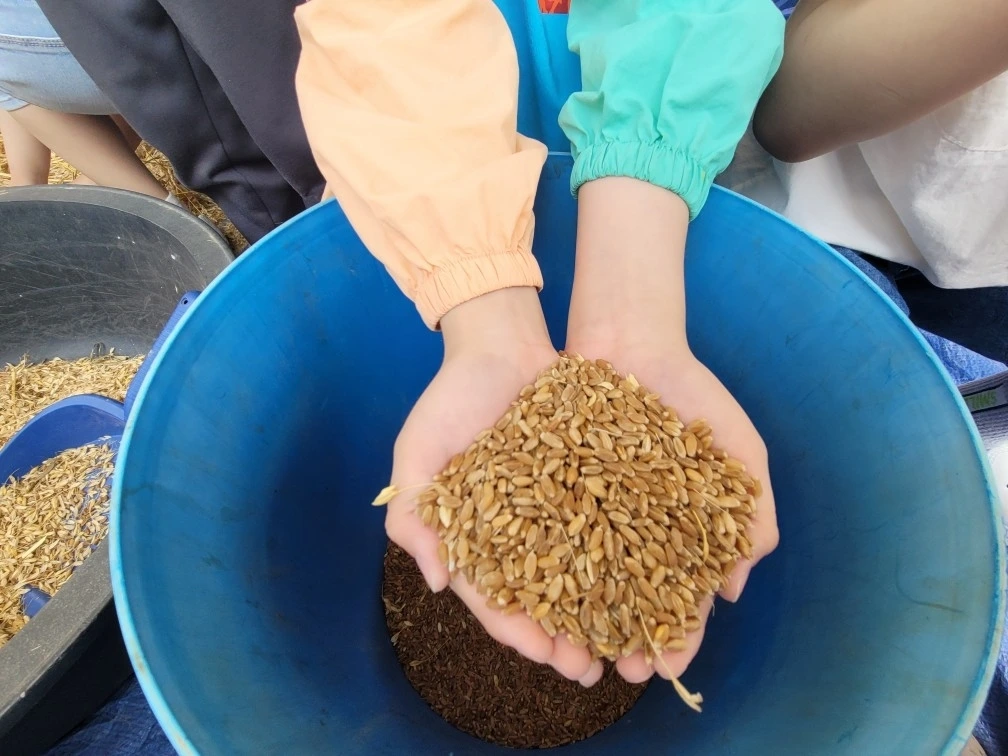 이제 씨앗을 말려 수확 중이다. 아이들이 손으로 비벼보기도 하고 입에 넣어 오물거리며 씹어보기도 한다. 우리밀을 가지고 칼국수도 만들고 피자도 만들자고 의견이 분분하다.