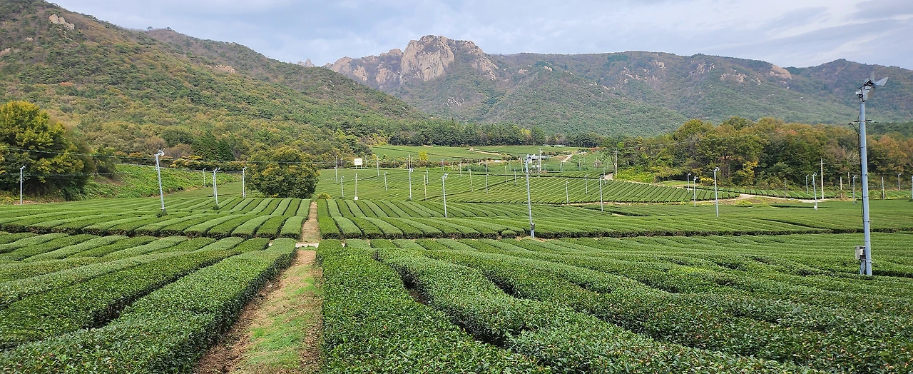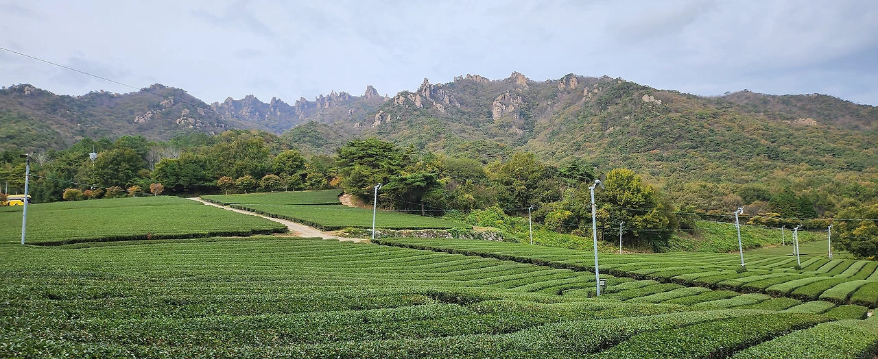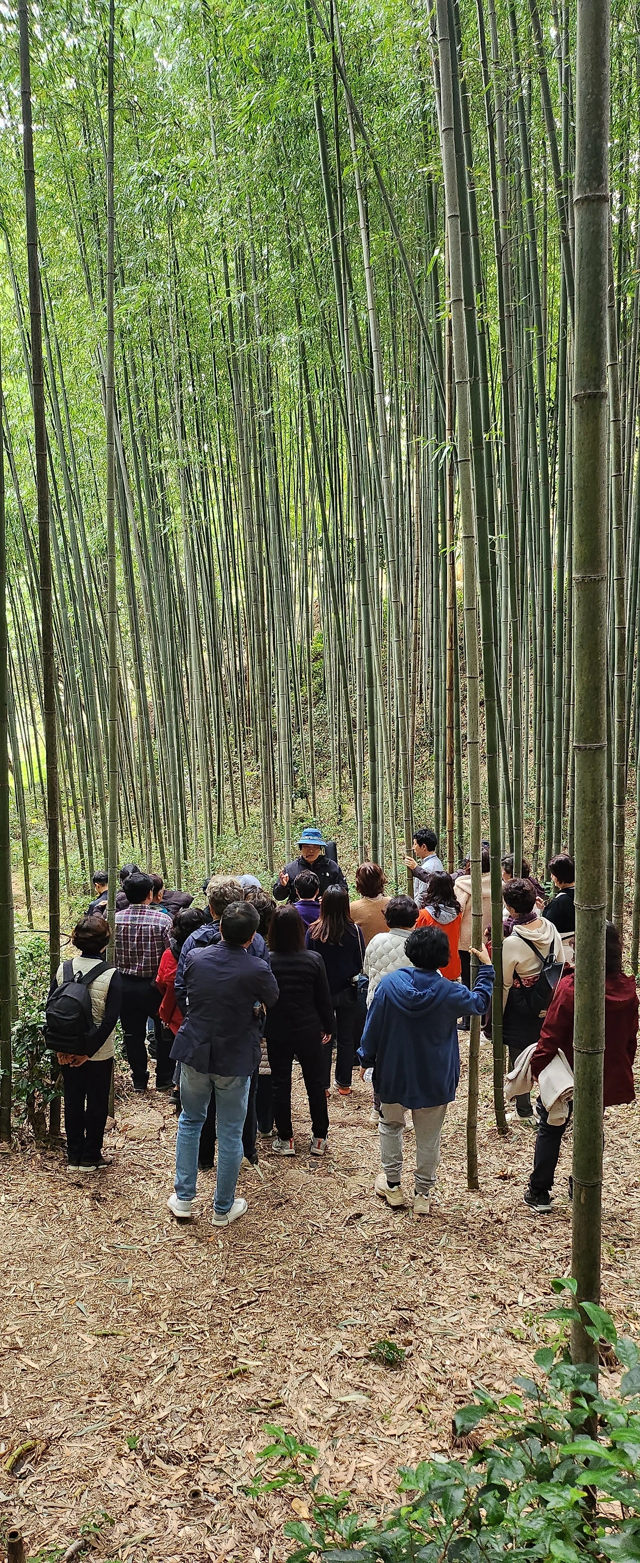 오후가 되었다. 10만 평이나 되는 땅에 심은 녹차밭을 지나 백운동 별서정원 숲길로 들어섰다. 편백나무와 소나무 숲길을 지나가니 큰 대나무숲이 나타났다. 대나무숲 아래에서 자라는 차를 따서 말리면 죽로차가 되는데 이슬을 먹고 자란 차라서 죽로차라고 한다.