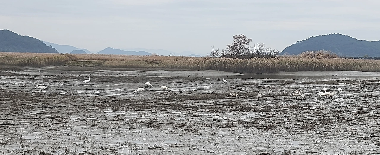 차를 마시고 강진만 갈대숲 생태공원으로 갔다. 고려시대 때는 청자의 고장이었고, 조선시대 제주도와 뱃길이 이어지는 마량포구가 있는 곳. 임영웅의 '마량에 가고 싶다'는 노래가 절로 흘러나왔다. 길게 이어지는 습지에는 칠게와 짱뚱어들이 지천이고 시베리아 벌판에서 겨울을 나기 위해 날아온 고니들의 소리와 기러기, 청둥오리들의 별천지였다. 앞으로 국가정원으로 만들어진다고 하니 또 하나의 관광명소가 될 것이다.