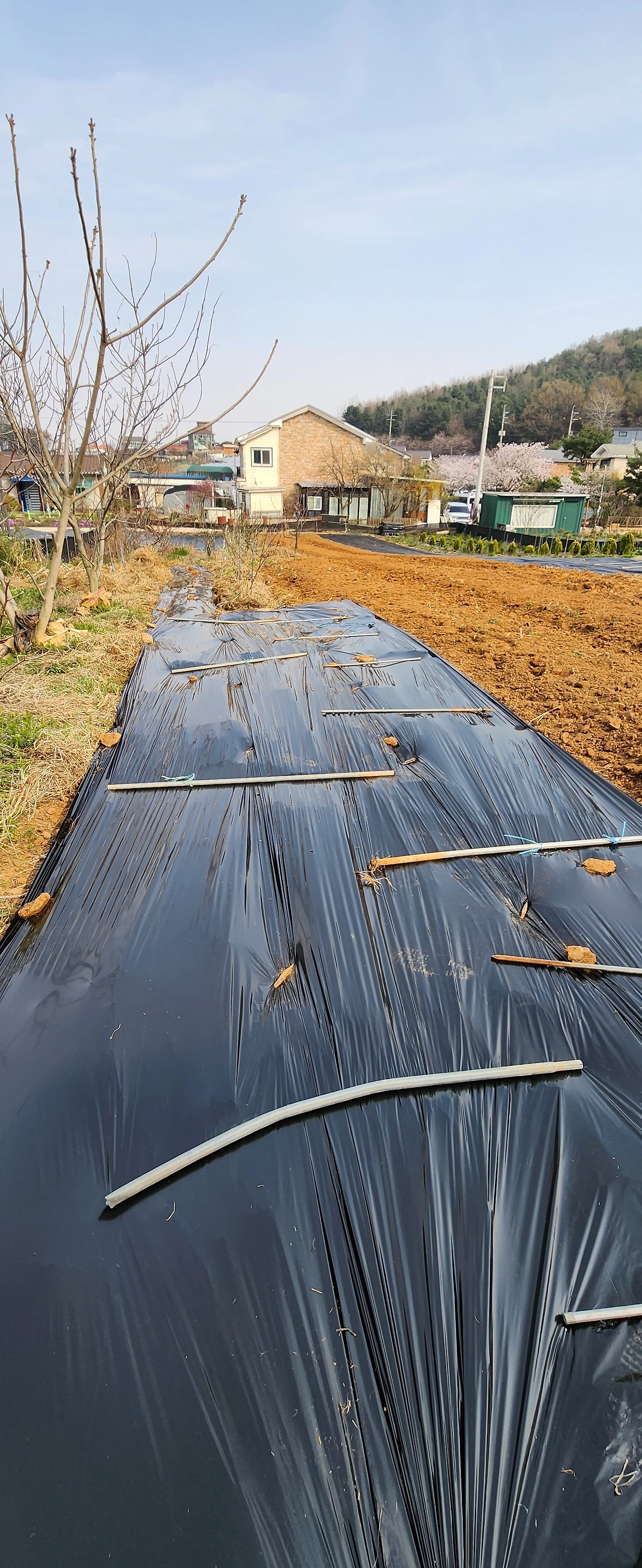 오늘은 혼자서 밭에 부직포와 비닐을 덮었다. 혼자 하려니 힘이 들었다. 10시에 시작해서 오후 4시에 끝이 났다. 체력의 한계를 느껐다. 아들이 왔더라면 쉬웠을 것을 너무나 힘이 들어 중간에 칼국수를 먹으러 갔다. 고갈된 체력에 힘을 얻고 나머지 일을 마쳤다. 남은 일은 10일에 마쳐야 한다. 올 해에도 나무를 더 심을 생각이다. 앵두꽃이 활짝 피어 내 기분을 좋게 했다.