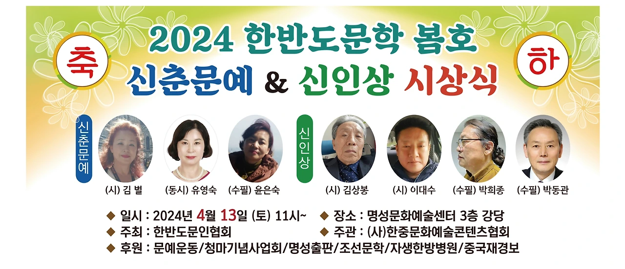필자는 한반도문학 신인상 심사를 6년째 해오고 있다. 신인상에 많은 응모자들이 도전하고 있고 또 등단하여 작가로 활동하고 있다.