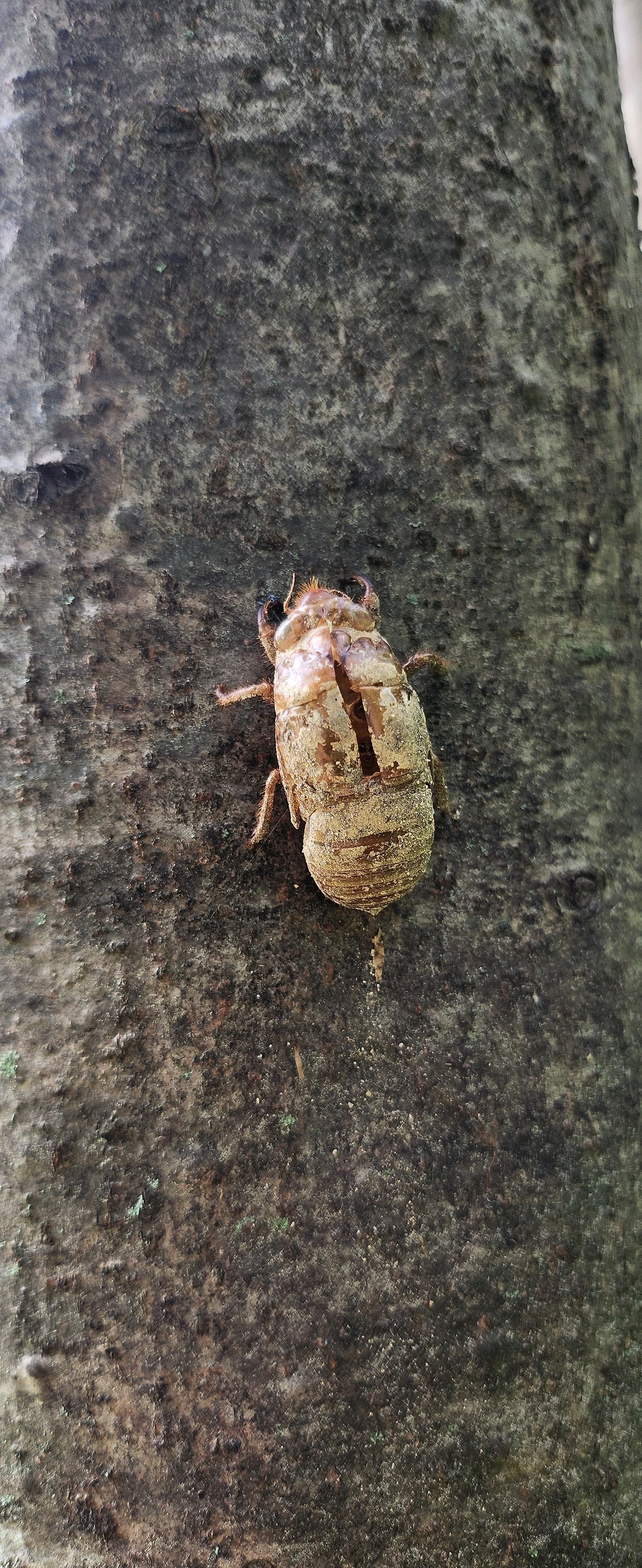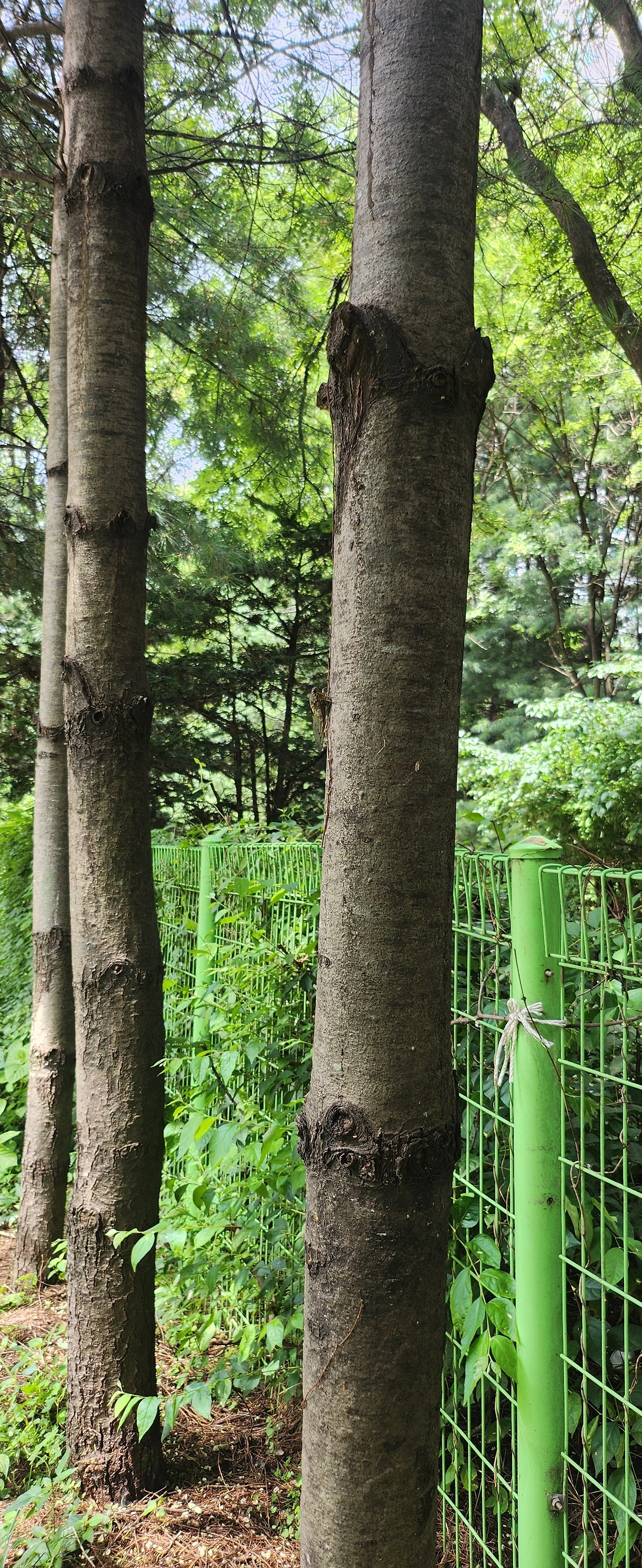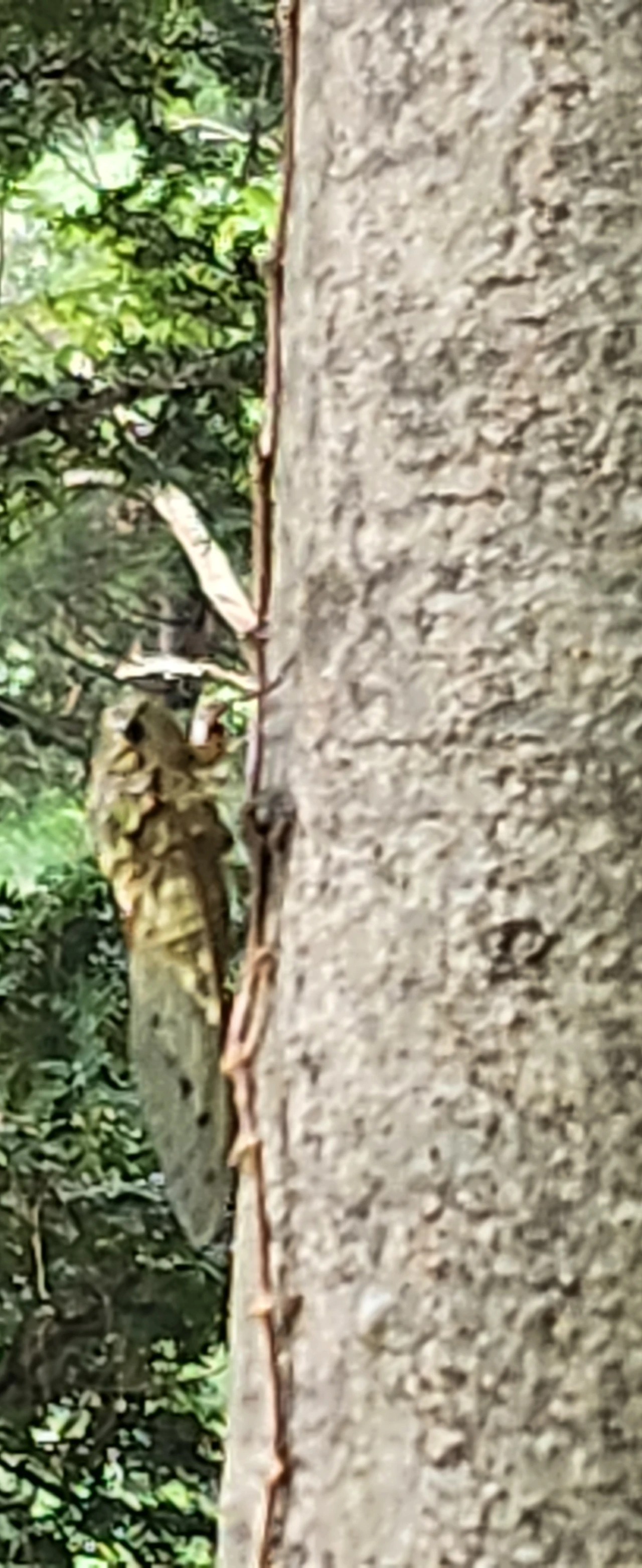 나무 위로 올라오는 매미