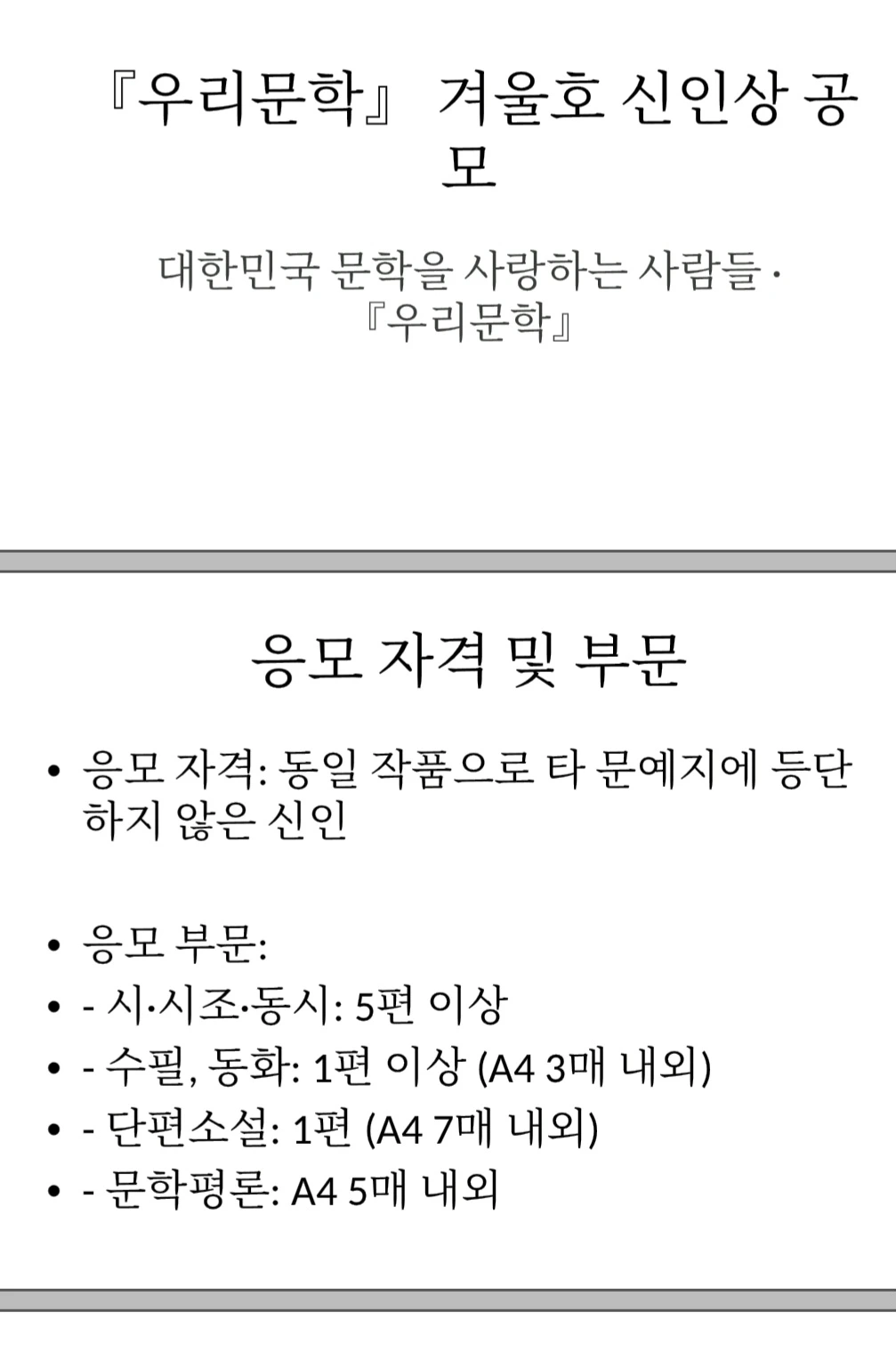 수필, 동화: 1편 이상 (A4 3매 내외)
