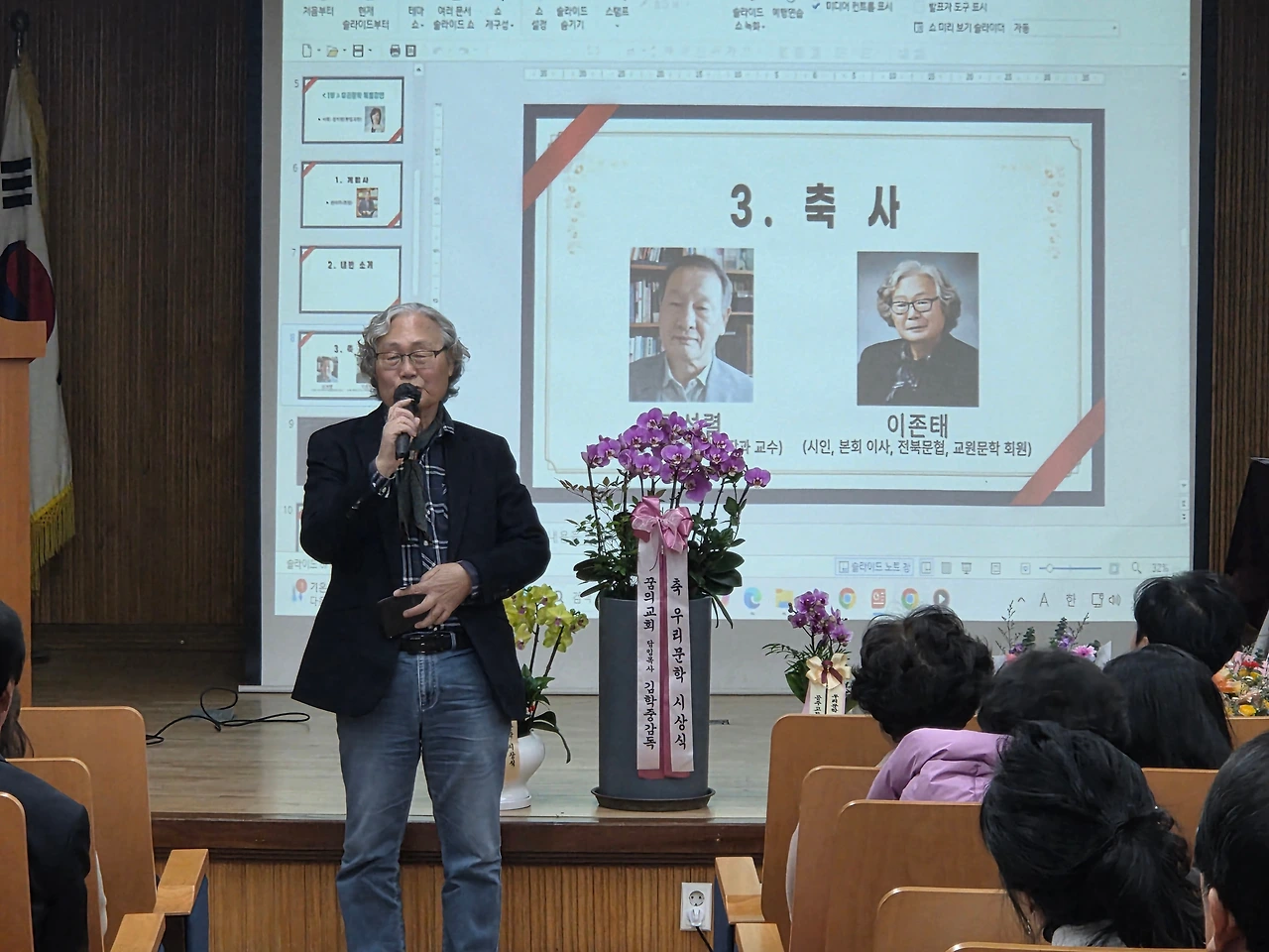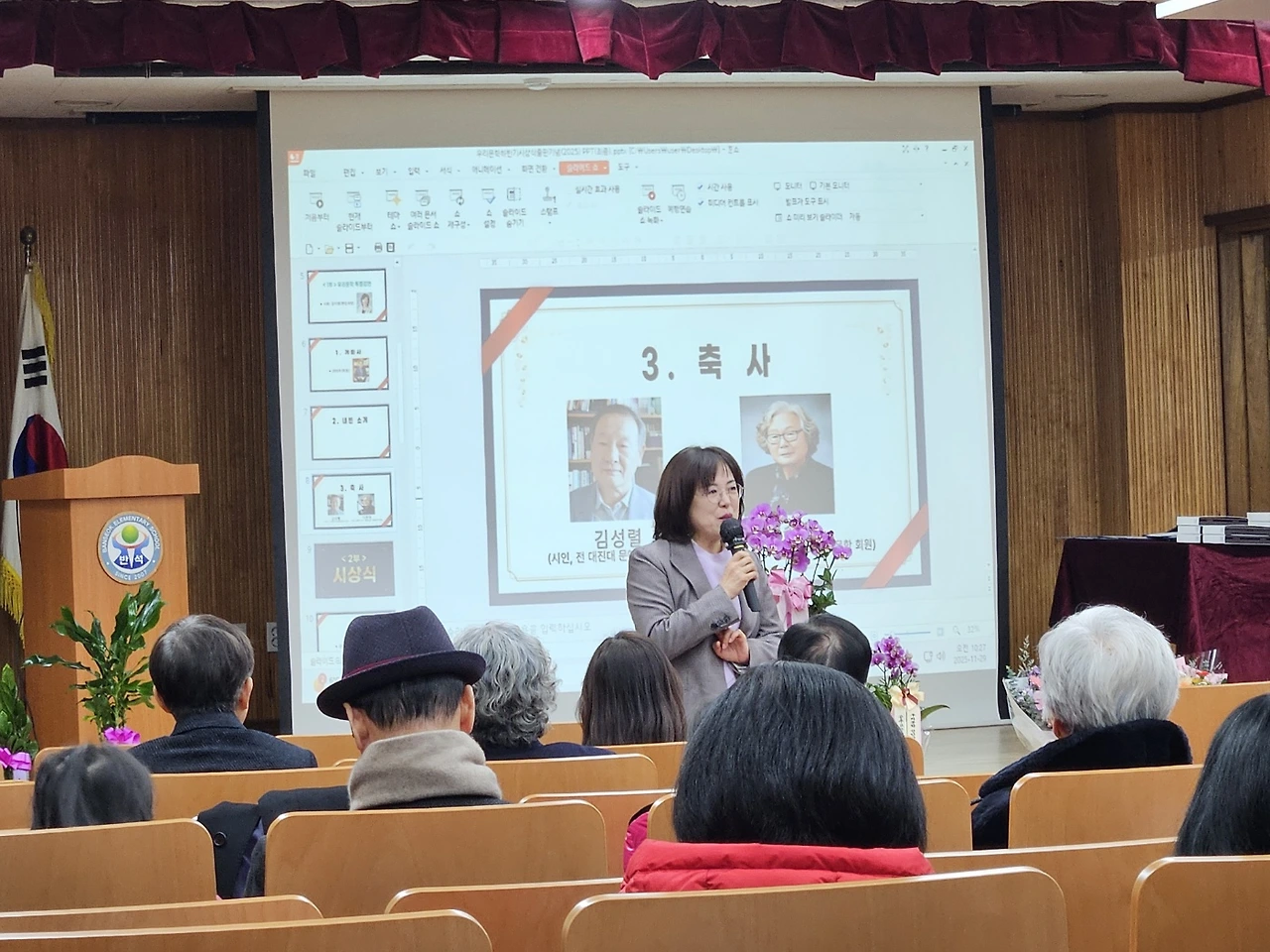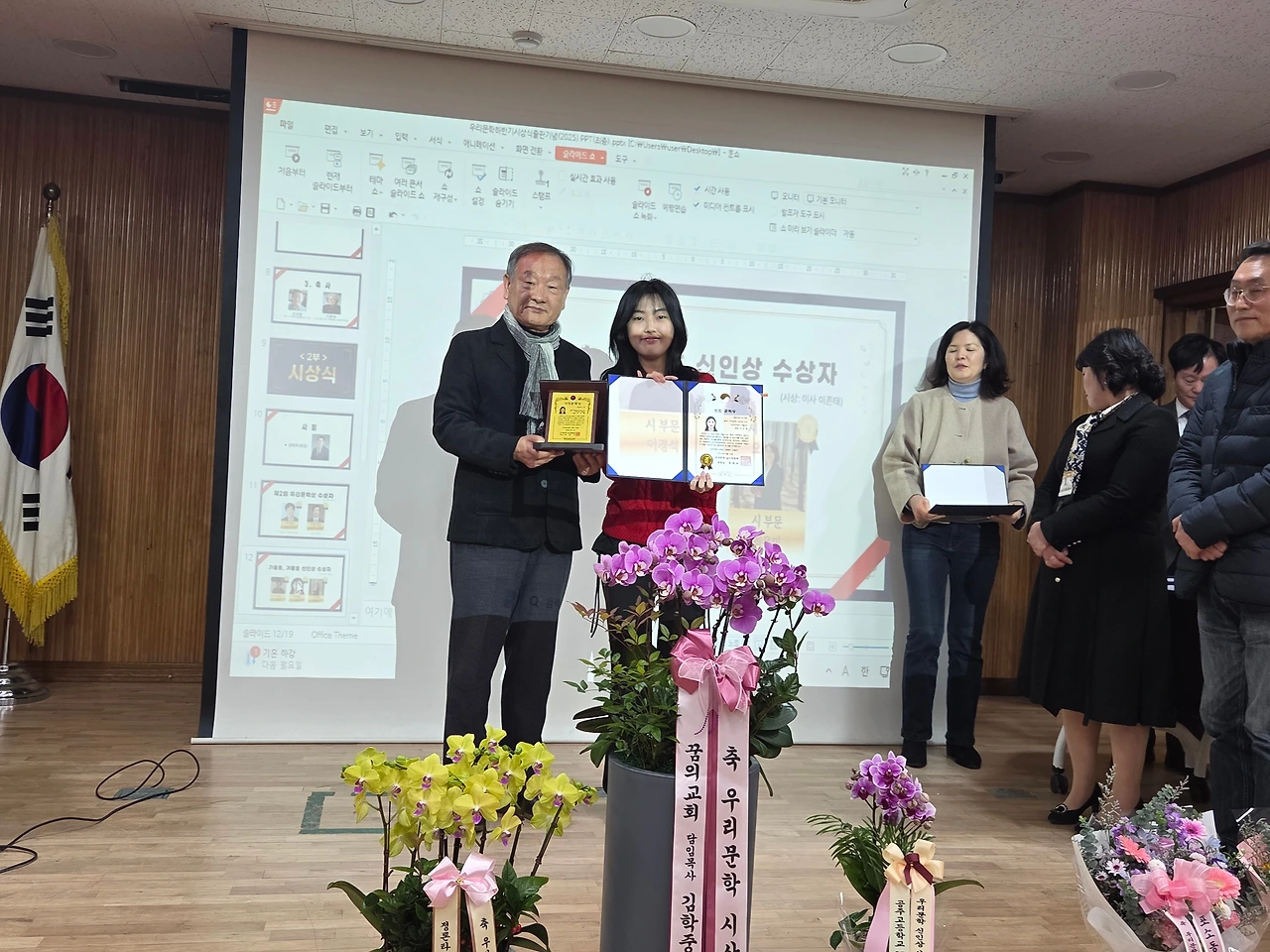 「우리문학」하반기문학상시상식및출판기념회참석자들이단체기념촬영하고있다. 우리문학(회장권태주)은지난29일「우리문학」겨울호를출간하고,반