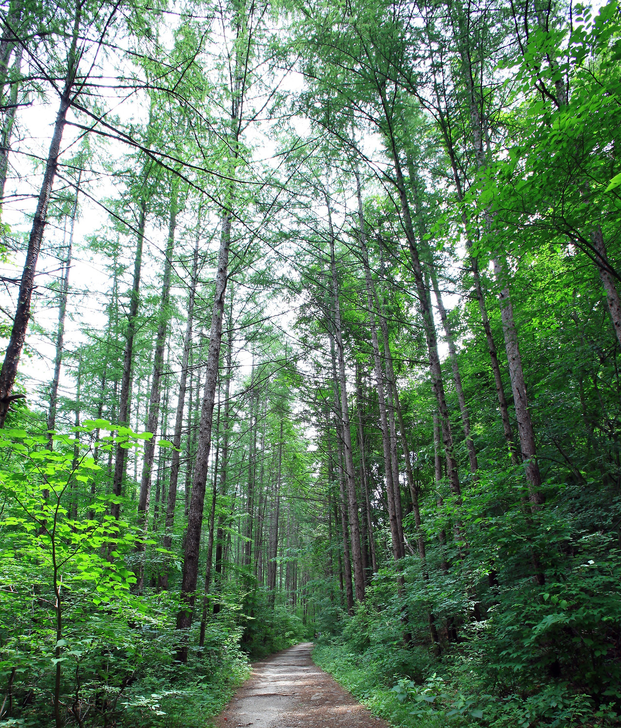 가까이서 보니 이 직선의 산은 곡선의 산과는 다른 방식으로 마음을 어루만지고 있었다. 키의 5배는 될 듯한 높은 침엽수들 아래서 서늘함을 느끼며 걷다보면 절로 경건한 마음이 들었다. 왜 옛날 사람들이 산신령을 믿고 인간 외의 영적인 존재를 상상했는지 알 법하다.