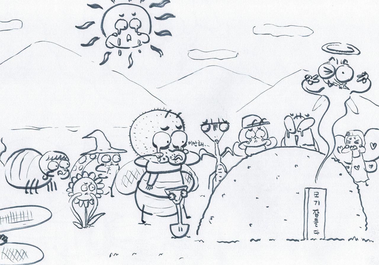 모기 시체를 안고 와 양지바른 언덕에 묻어주었다.