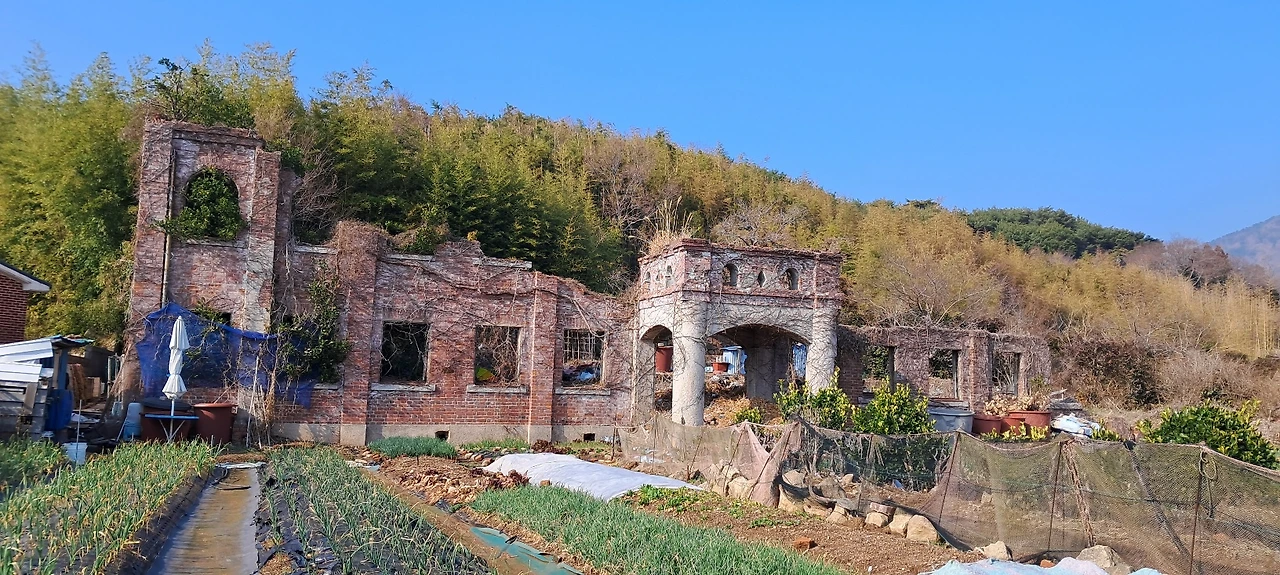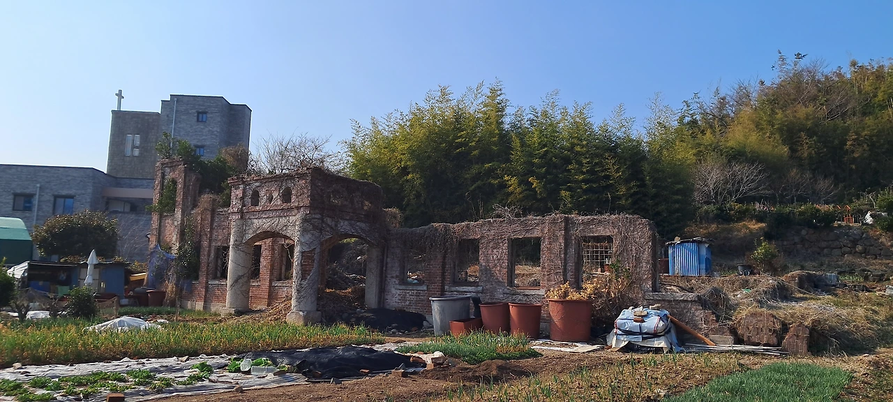 거제 성당 뒤 / 폐허가 된 건물 옆 십자가
