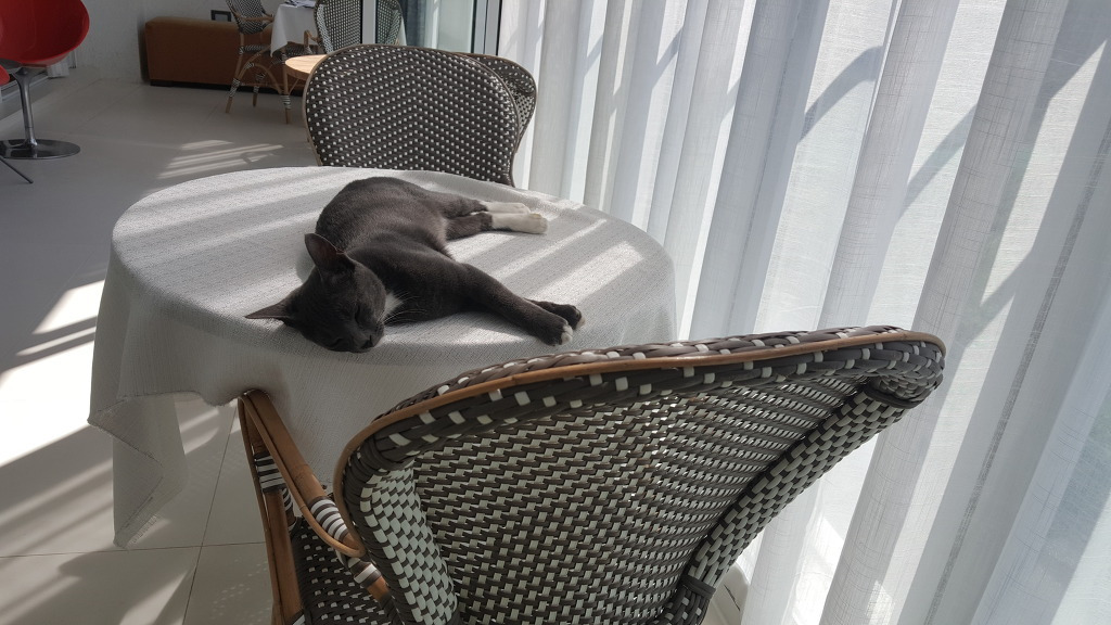 테이블 위에서 쓰러져 잠드는 순간