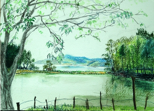 호수에 연꽃을 내려다보며 청개구리는 파랑새를 기다렸다.