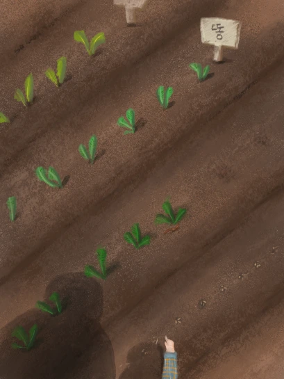 영선은 아빠가 밭에 바둑판처럼 선을 긋고 시금치를 심는 게 신기했다.