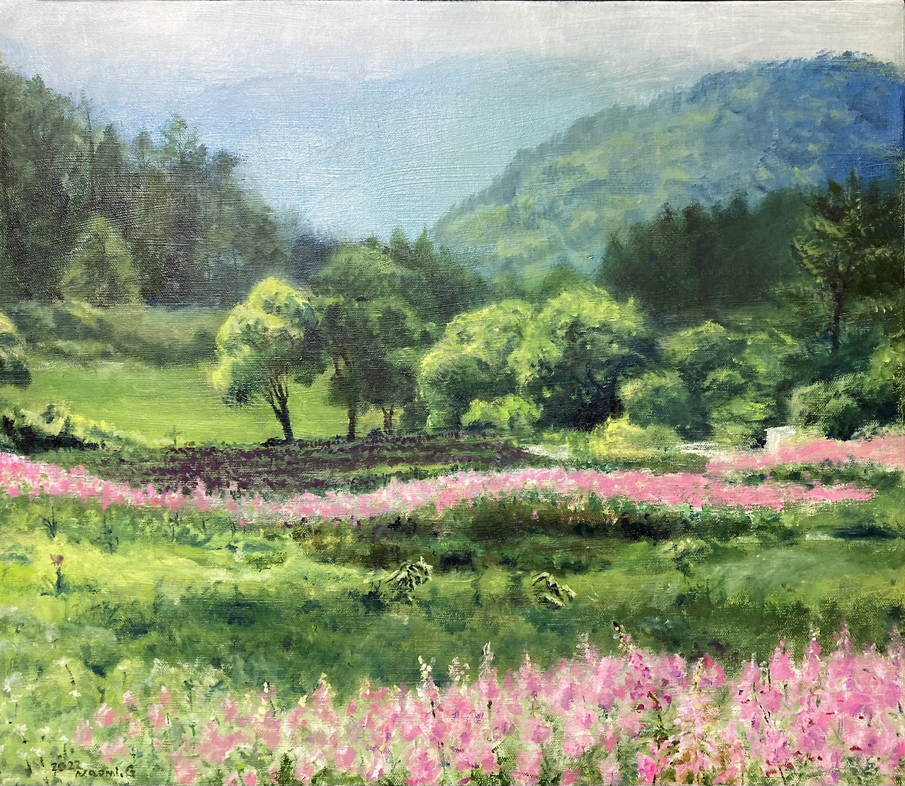 버섯 담은 바구니를 들고 내려오다 들판에 핀 꽃을 봤다.