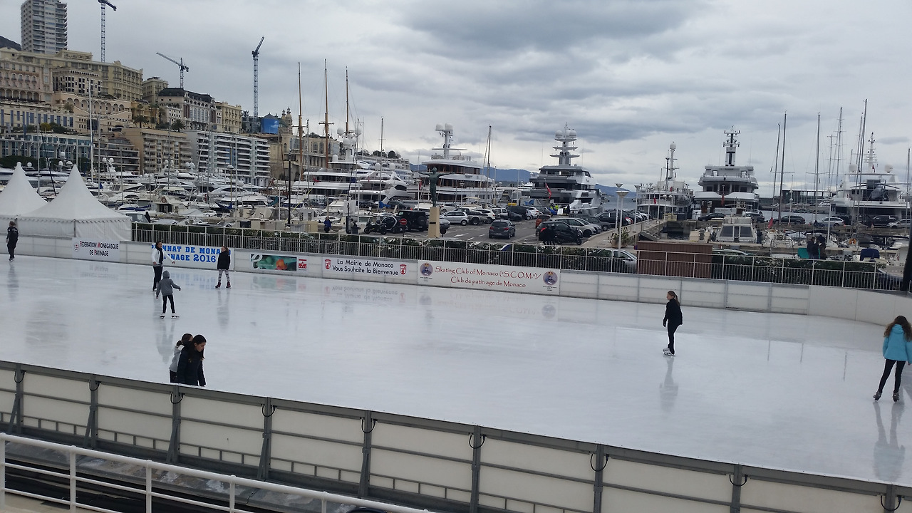 항구를 앞에 두고 아이스링크가 있다.