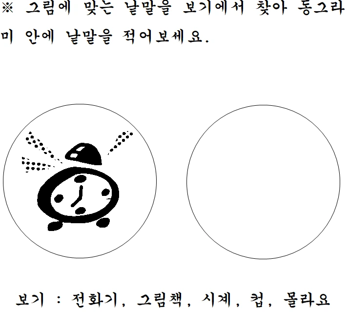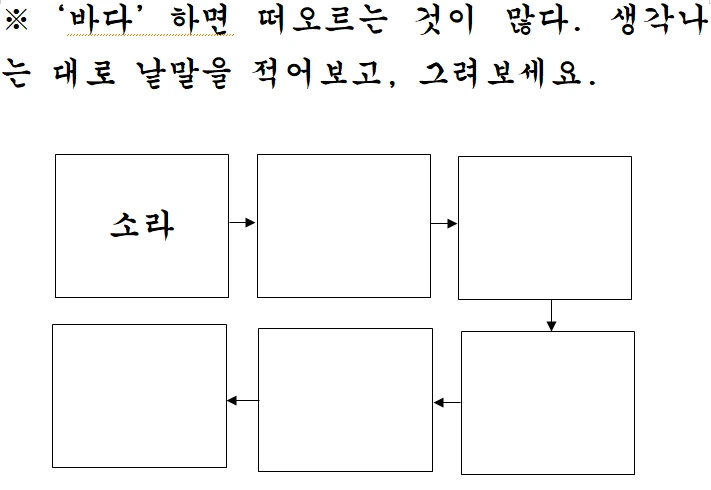 그림을 통해 어휘력을 확장하는 연습을 하는 자료다.