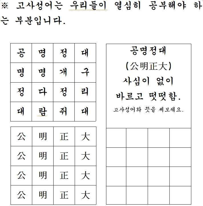 한자 능력과 어휘력 확장의 효과도 있지만 인성교육 자료라 할 수 있다.