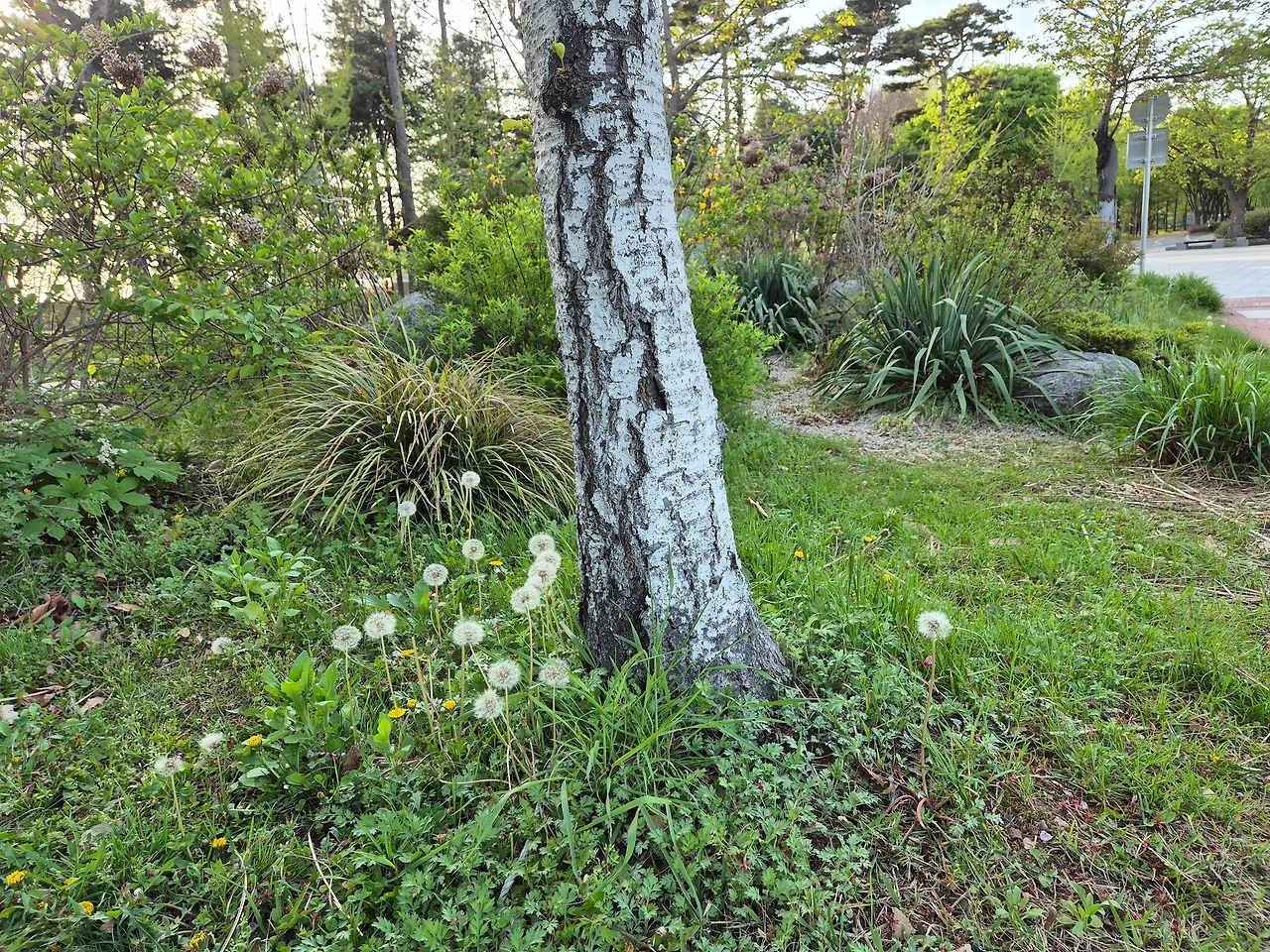 따뜻한 날씨가 며칠 이어지자 노란 민들레 꽃은 하얀 솜사탕 씨앗으로 변했어요.