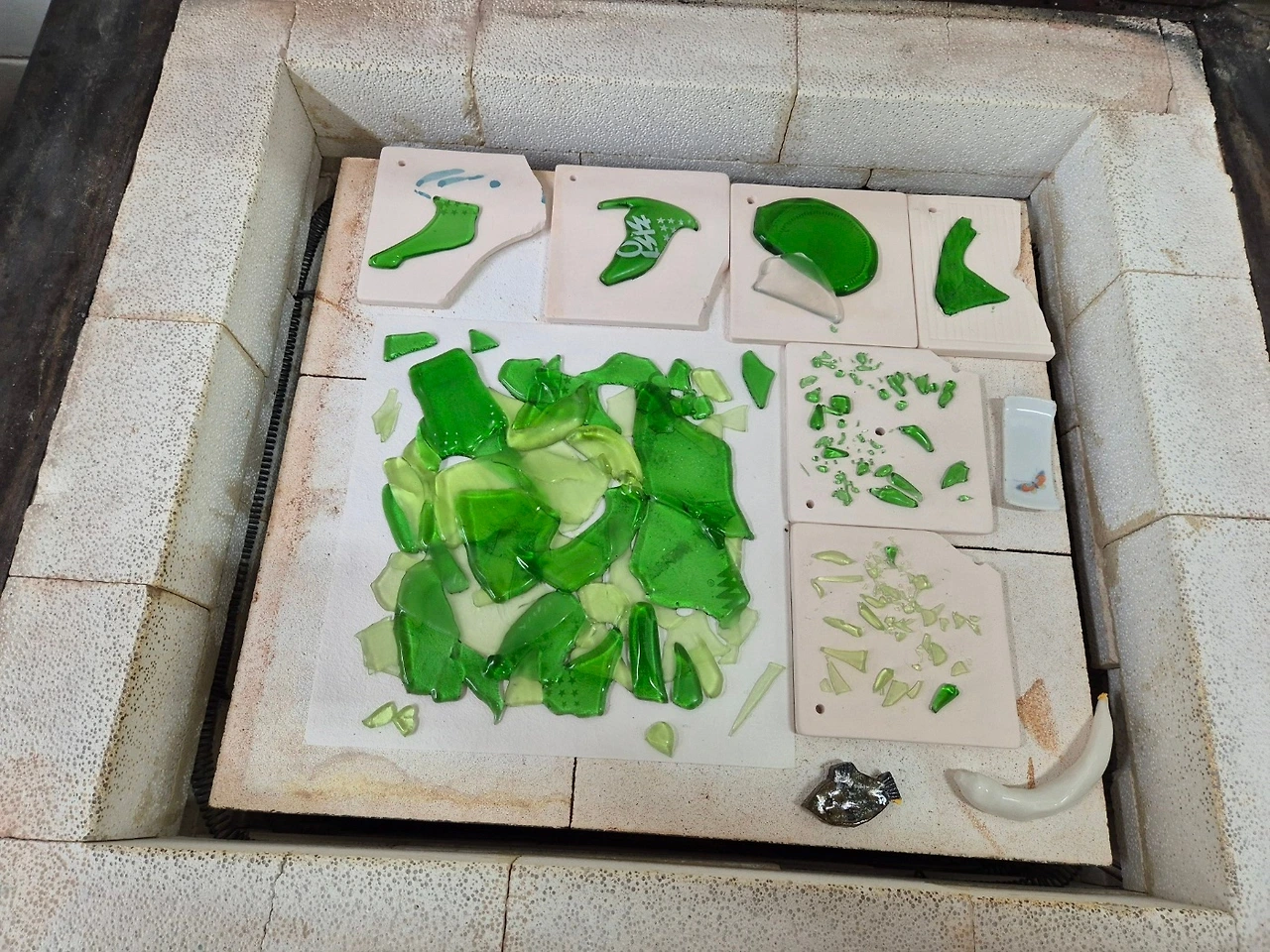 예술가의 손에 깨진 유리조각이 되고 작은 파편이 되어 가마 속에 들어가 불맛을 보았다.