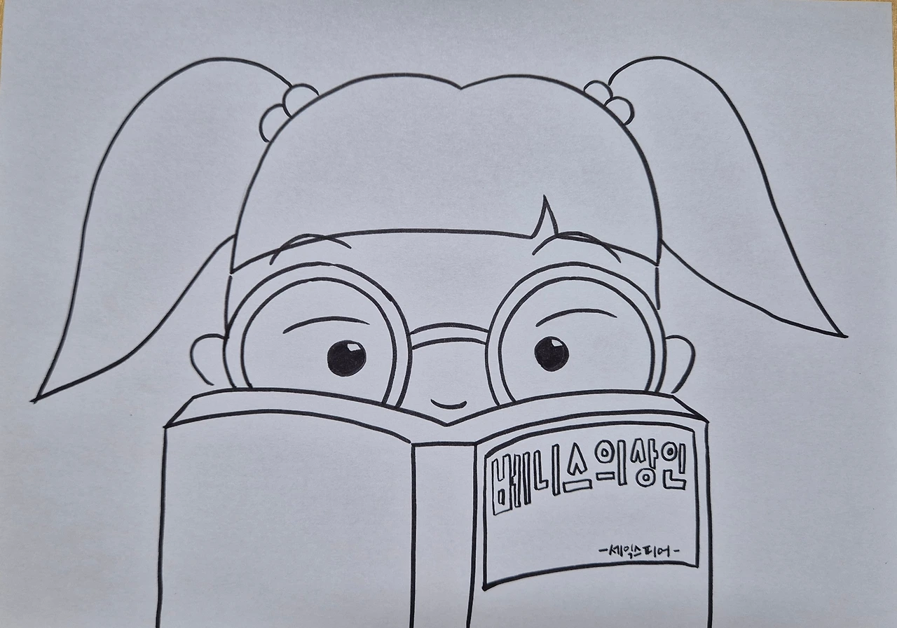영희가 <베니스의 상인> 책을 인형들에게 읽어주는 시간이었어요.