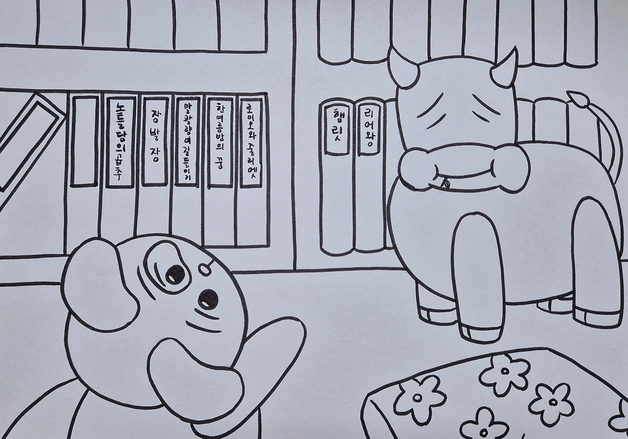 며칠 째 읽던 책 속에서 마법처럼 나온 날카로운 칼날이 영희를 괴롭혔어요.
