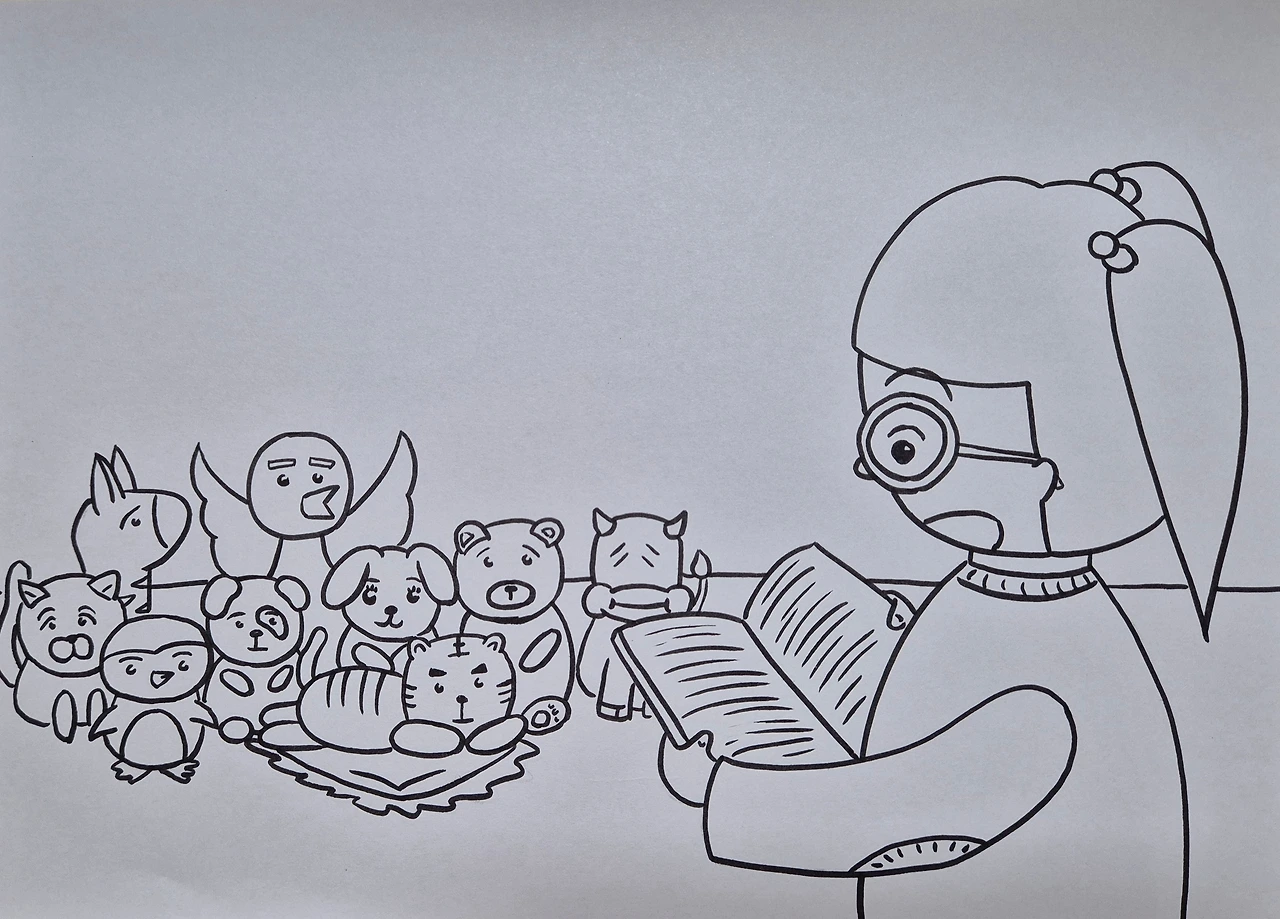 영희는 책을 읽고 난 뒤 인형들에게 읽어 주었어요.